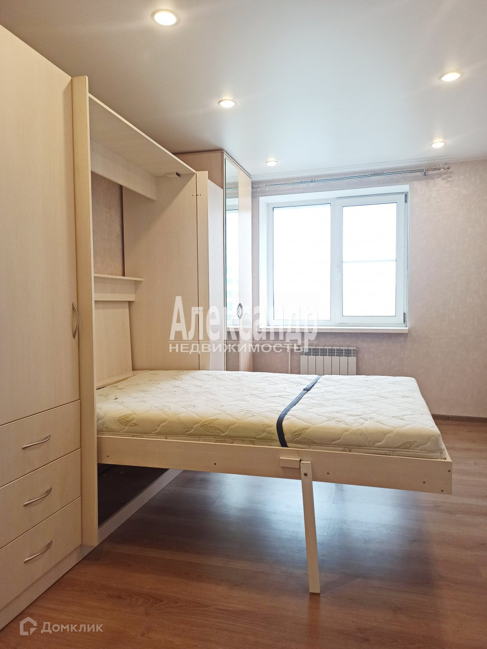 Квартира полностью меблирована и укомплектована мебелью, включая функциональный кухонный гарнитур с плитой, стиральной машиной и холодильником, диван и кухонный стол, в комнате установлена вместительная стенка-шкаф с откидной кроватью, в коридоре удобная встроенная гардеробная.