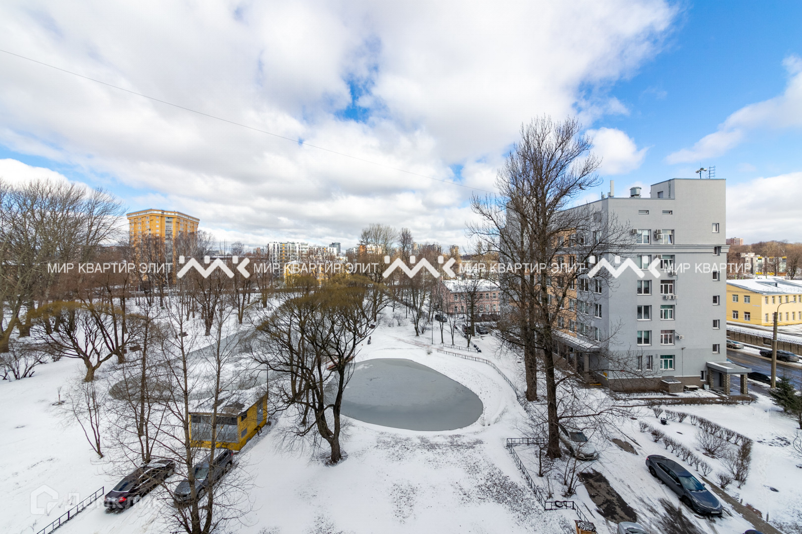 Прекрасный вид из окна на парк и пруд, а также в тихий двор с детскими площадками.