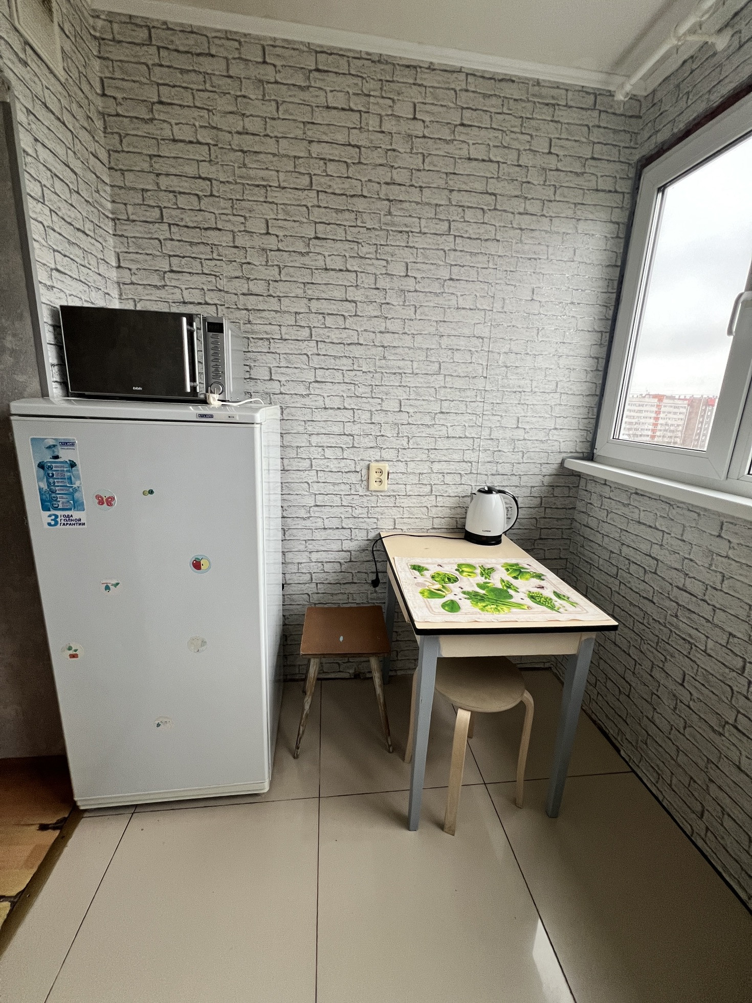 - Кафель на полу на кухне целый и достойный.