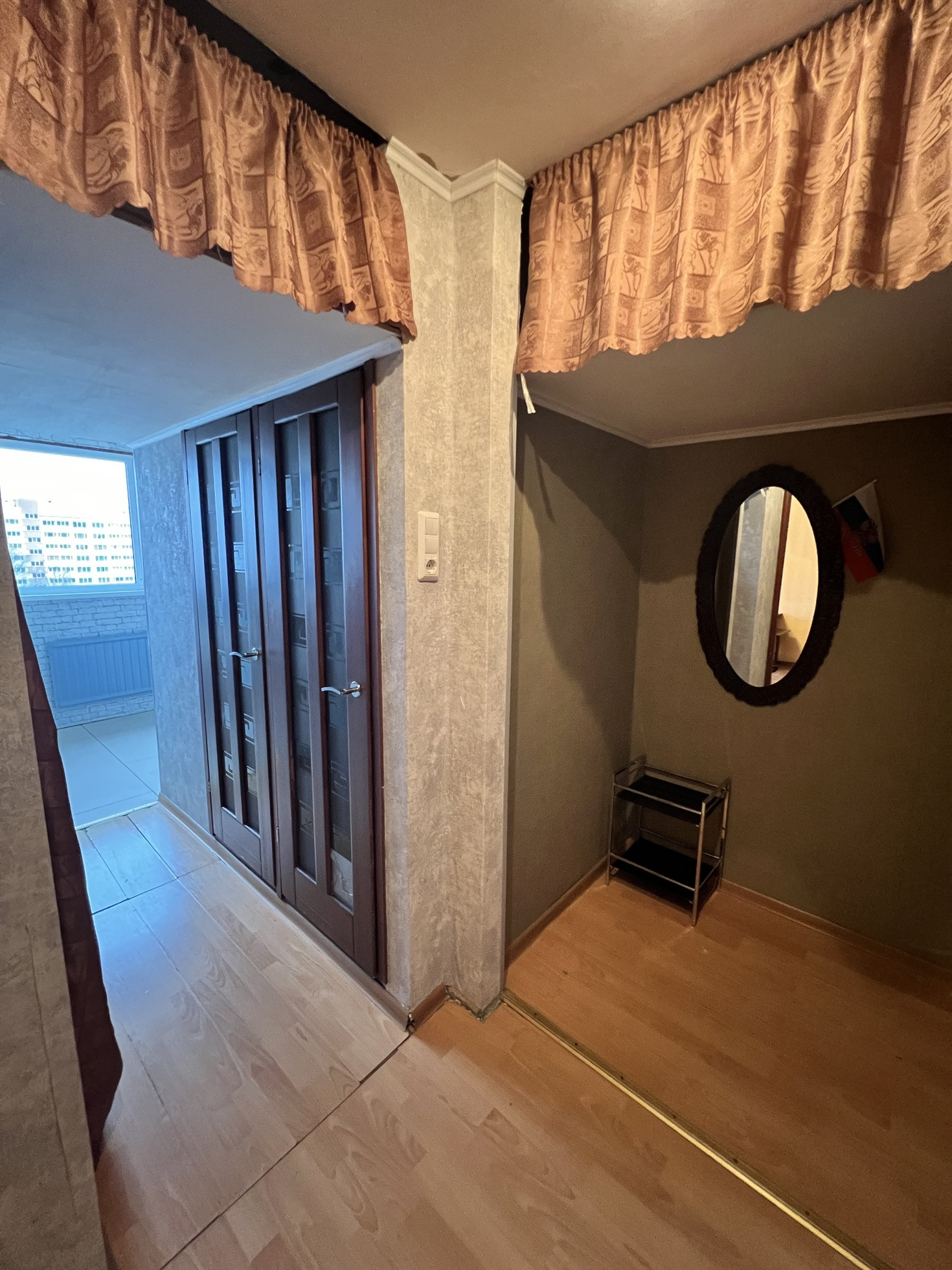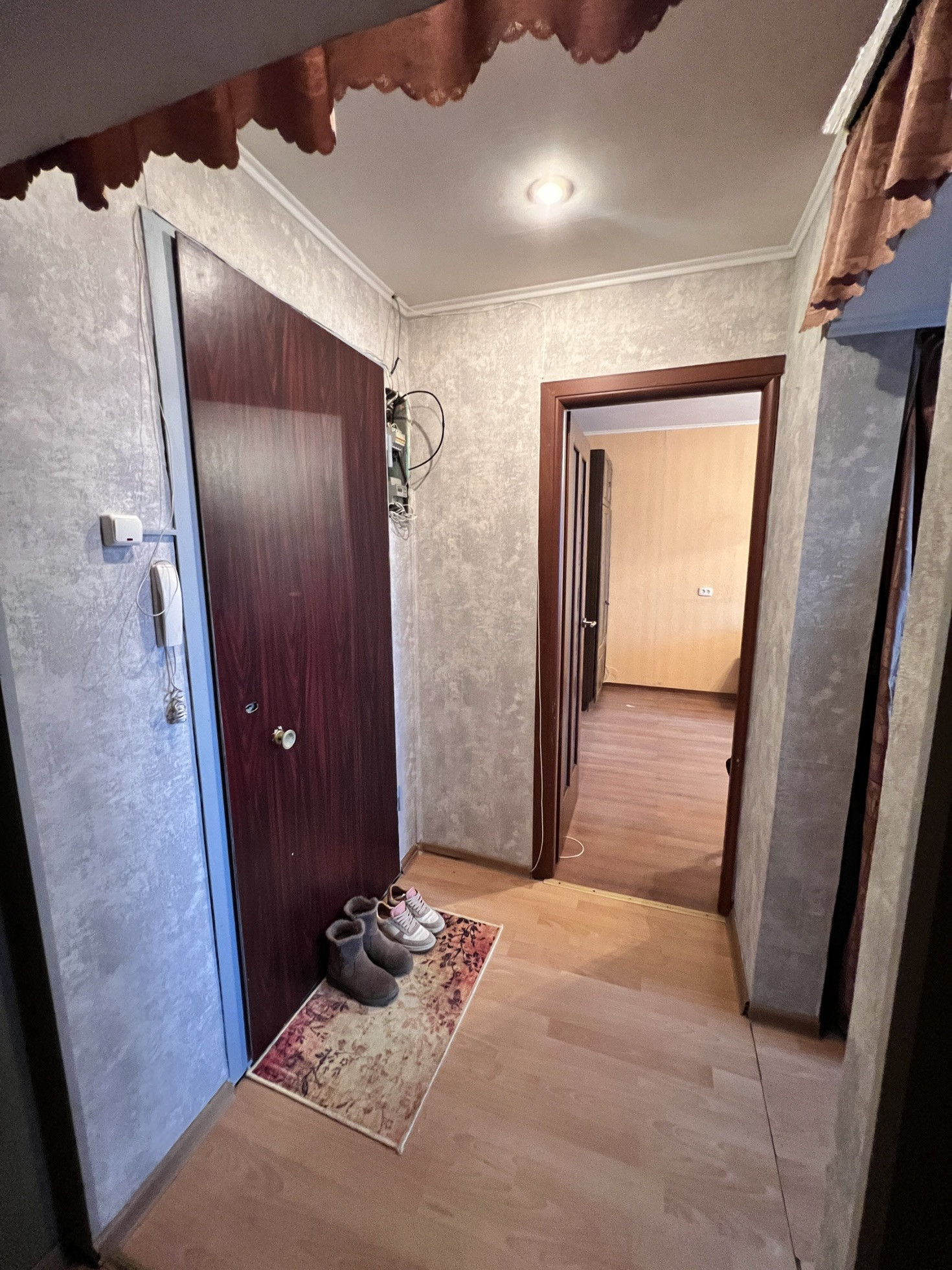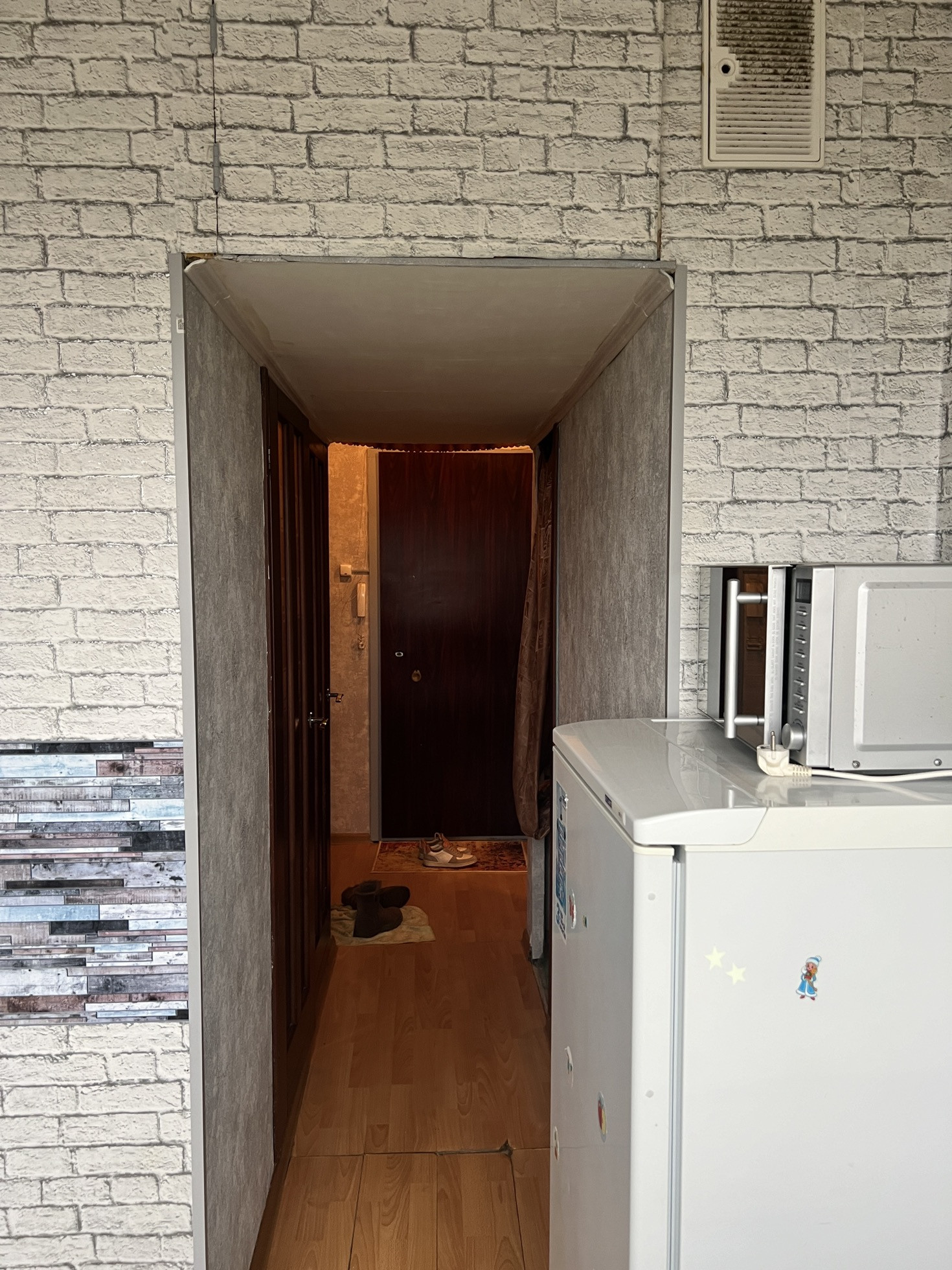 - Просторный коридор с нишей в которую прекрасно встанет гардеробная и заменит вам шкаф, так же можно вывести в нее воду и установить там стиральную машину, а можно поставить туда еще и холодильник или коляску... Просторное место для любых ваших решений.