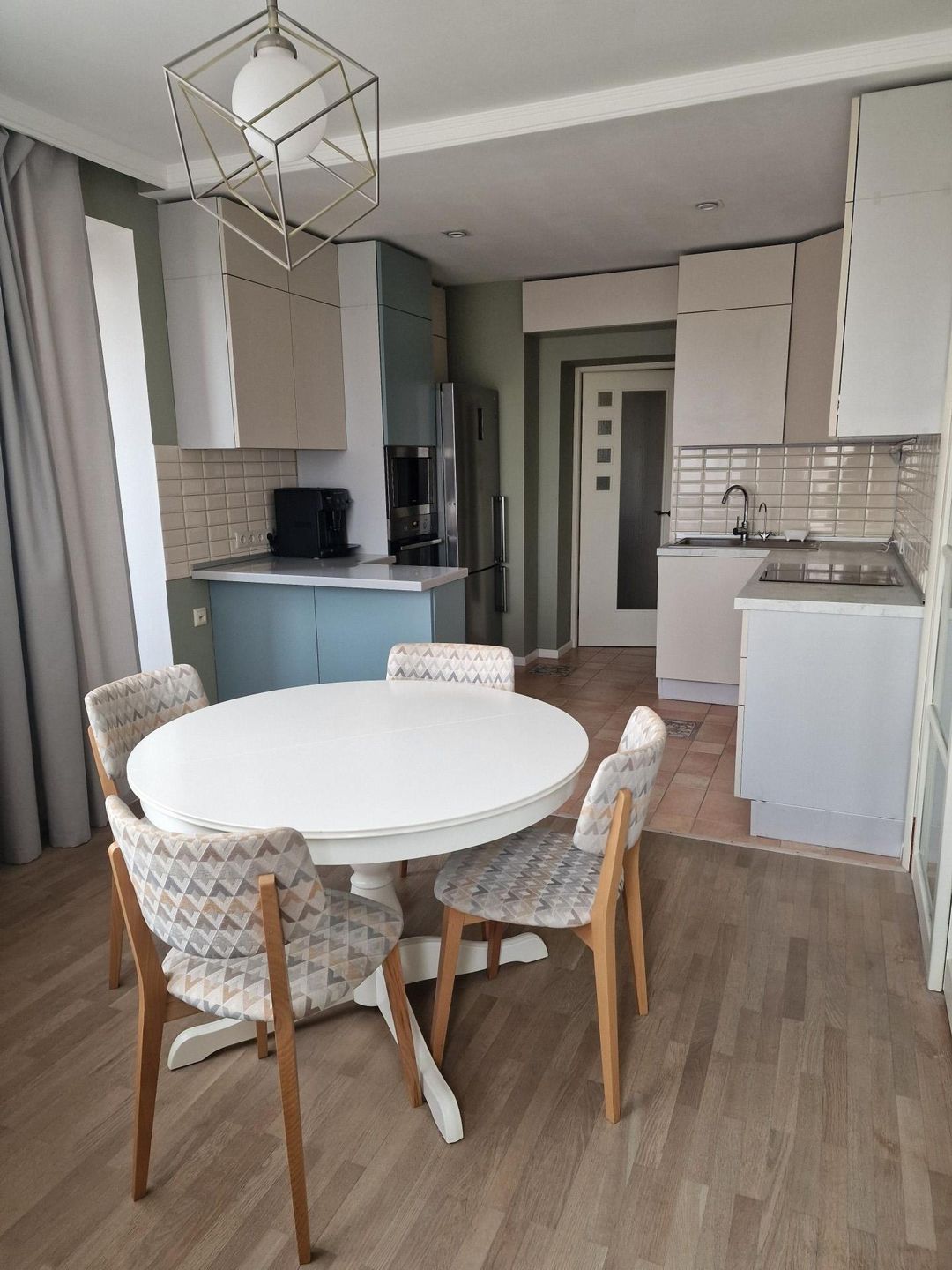 Сделан евроремонт с использованием качественных материалов. Кухня «Мария» с современной техникой Electrolux. В комнате установлен кондиционер, окна в прошлом году были обновлены на энергосберегающий стеклопакет, что дает дополнительное тепло и шумоизоляцию. Встроенные кровати в детских комнатах, шведская стенка.