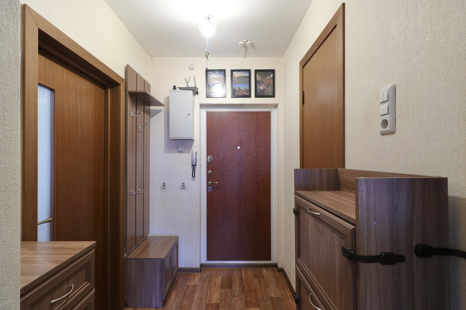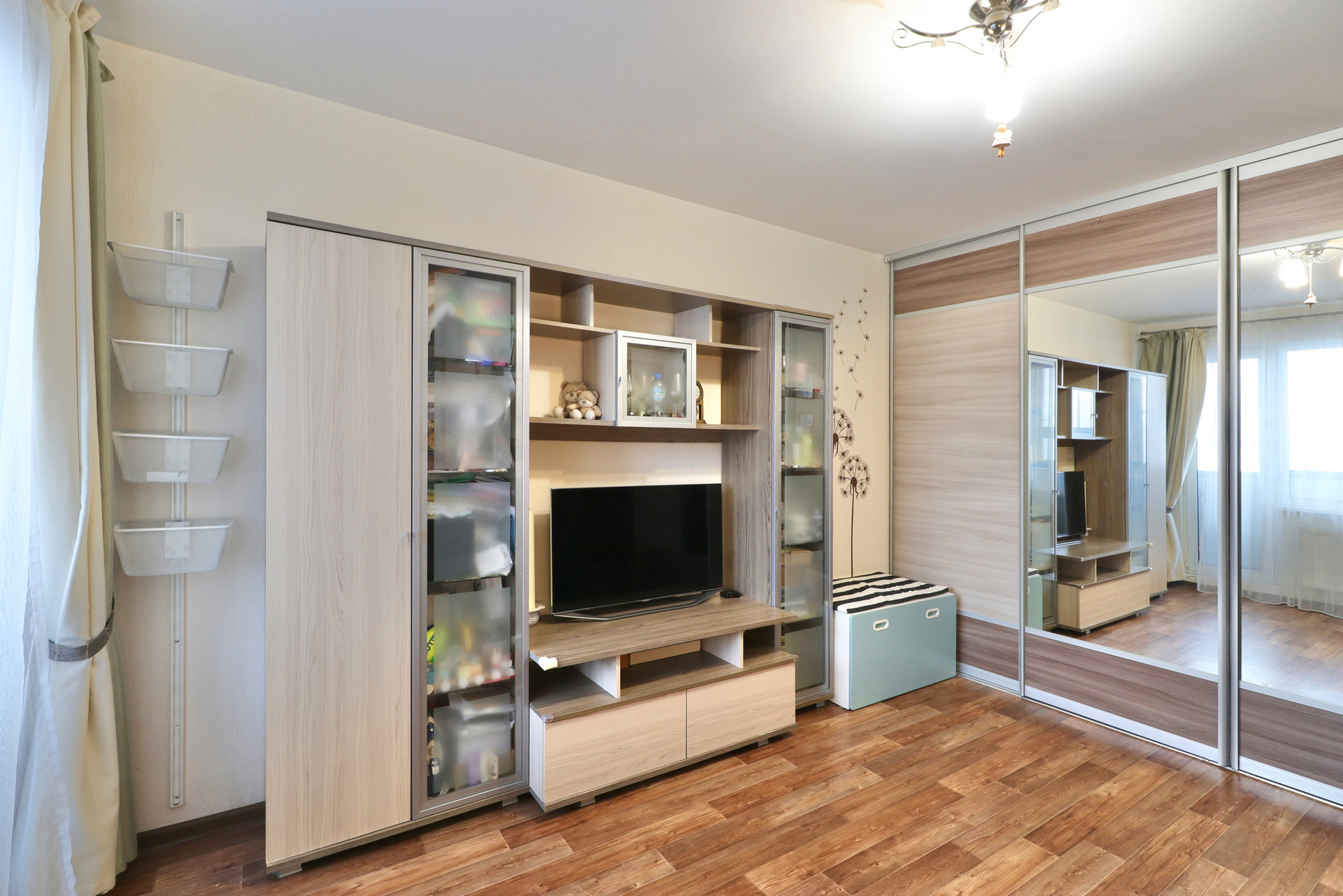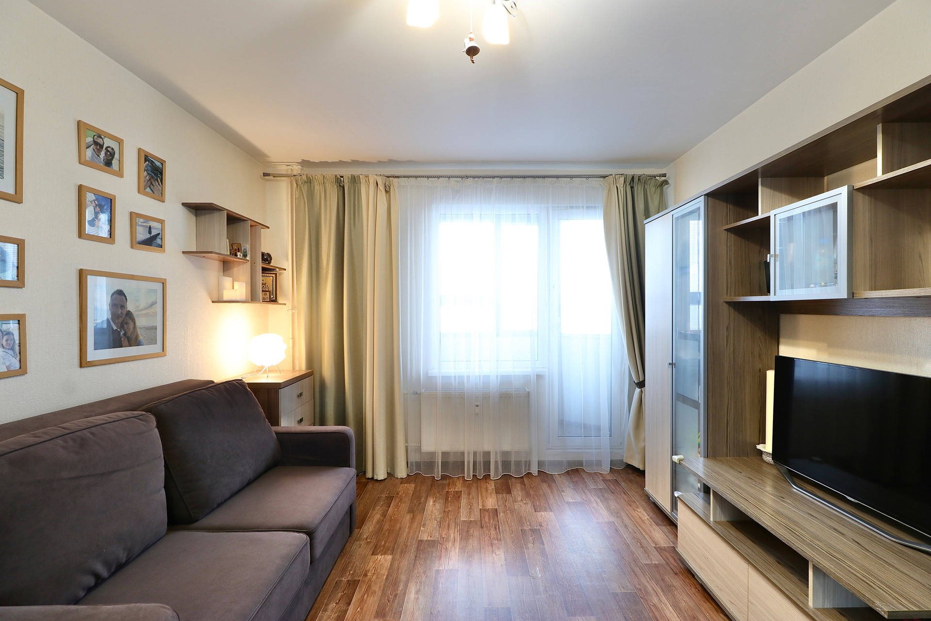 Квартира светлая и теплая. Потолки высокие добавляют объем и свет всем помещениям.