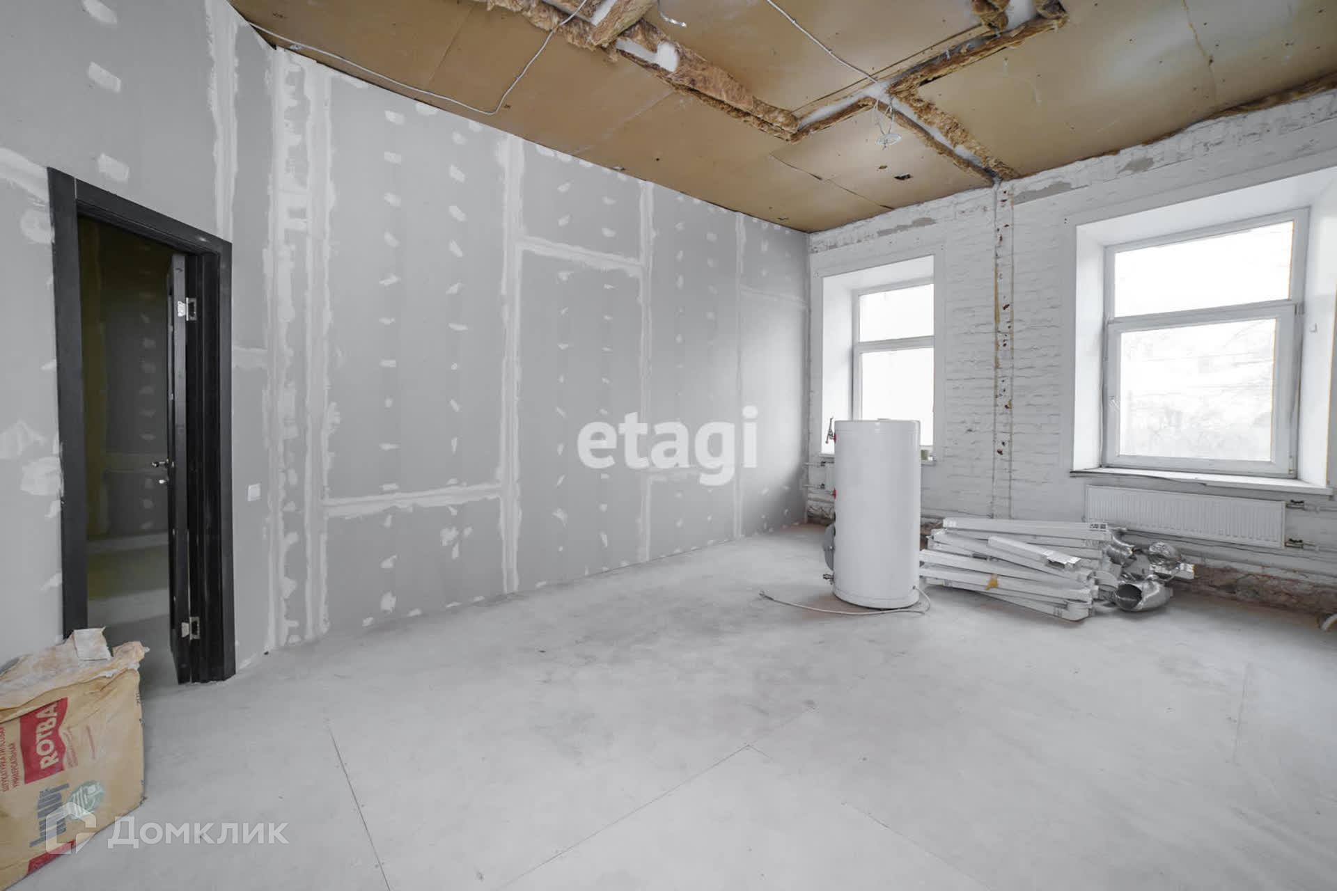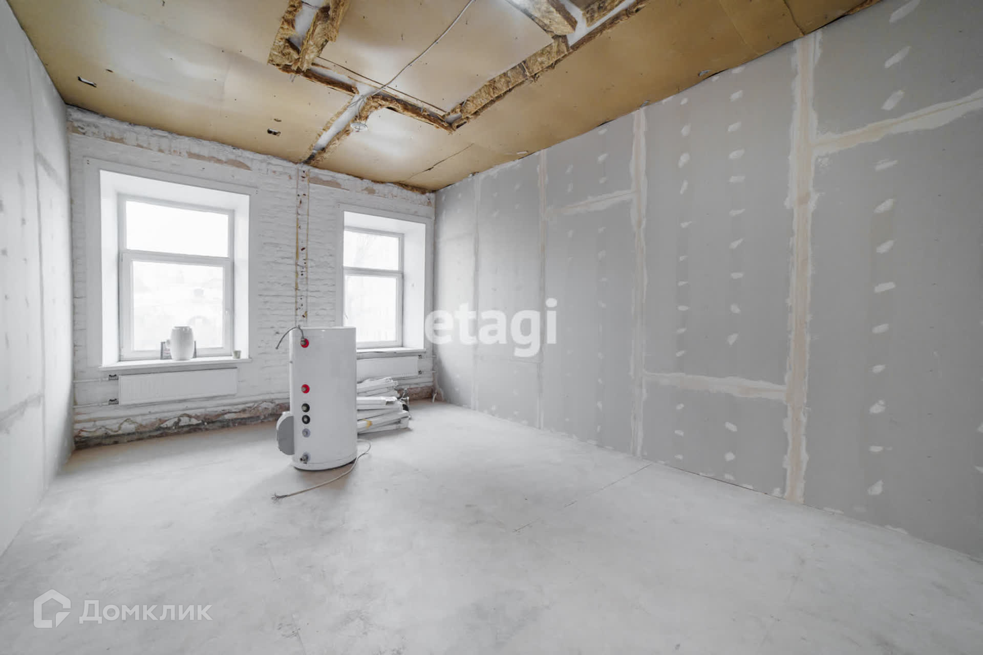 Частично выполненный ремонт: межкомнатные стены — гипсокартон, новые межкомнатные двери, стеклопакеты на окнах, новая разводка электричества и всех коммуникаций. Сейчас планировка квартиры соответствует кадастровому плану, но возможны любые перепланировки, т. к. капитальных стен внутри квартиры нет, а под квартирой коммерческое помещение (не общепит).