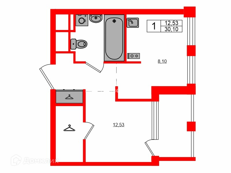 Общая площадь 30.1 м2