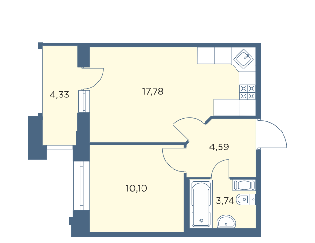 Общая площадь 37.59 м2
