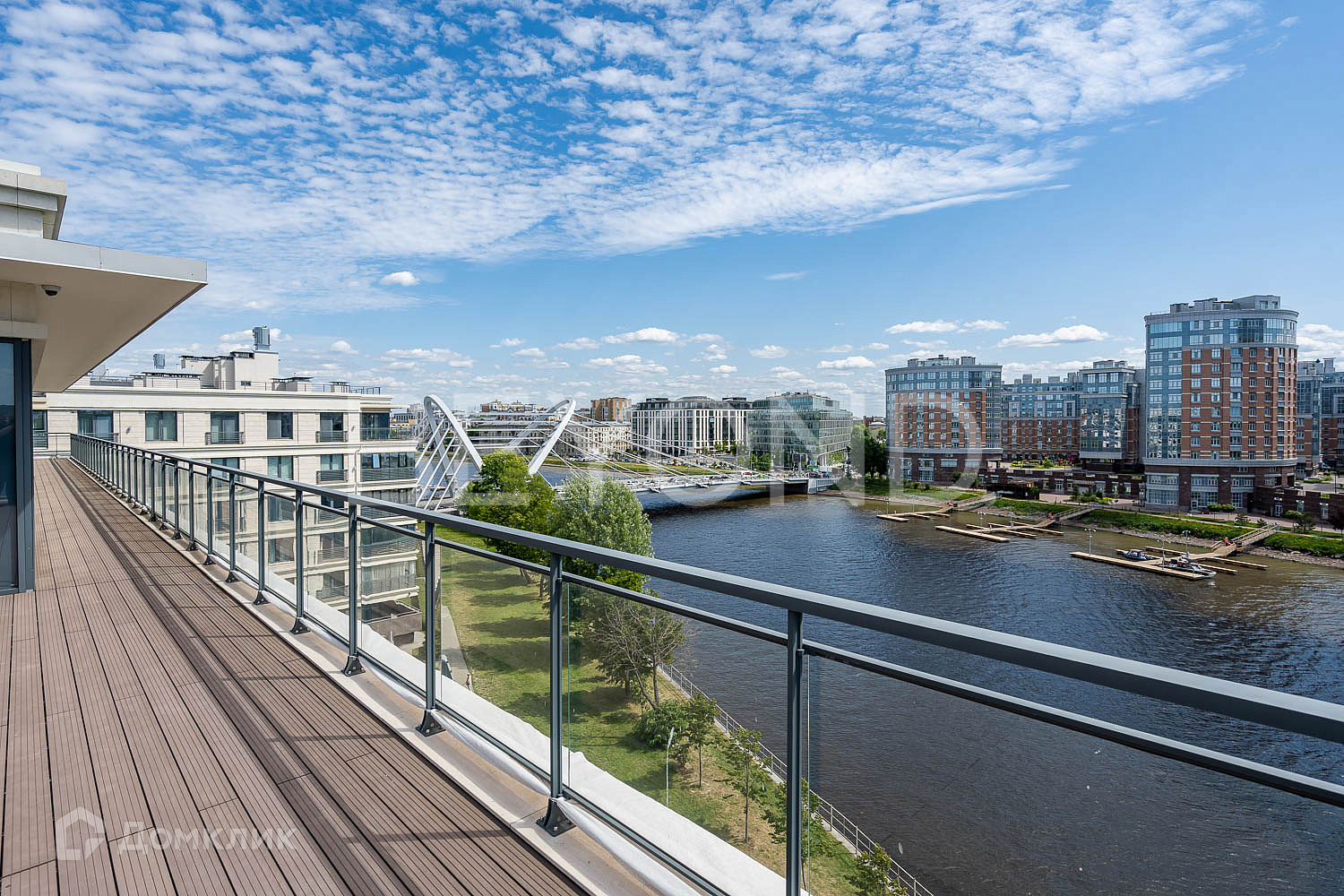 Предлагается к продаже эксклюзивный объект, по совокупности факторов не имеющий аналогов среди представленных в настоящий момент на рынке элитной недвижимости города - пентхаус общей площадью 547.5 кв. м с видом на панораму акватории р.Малая Невка, Финский залив и Лазаревский мост, а также с абсолютно новым ремонтом и меблировкой, выполненными по дизайн-проекту от английской студии Helen Green Design. Пентхаус расположен в самой видовой и удаленной от шума улиц части жилого комплекса Premium класса – Крестовский De Luxe, построенном в одном из наиболее престижных мест Петербурга - Крестовском о-ве. Комплекс имеет благоустроенную  территорию  с выходом на  прогулочную набережную и граничит со стадионом Динамо. По фасадной части расположены разнообразные объекты инфраструктуры: отделение Сбербанк, салоны красоты, Федерация бокса и т.д., а в самом комплексе – один из лучших детских садов на Крестовском.