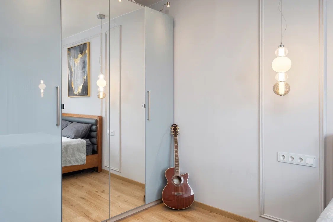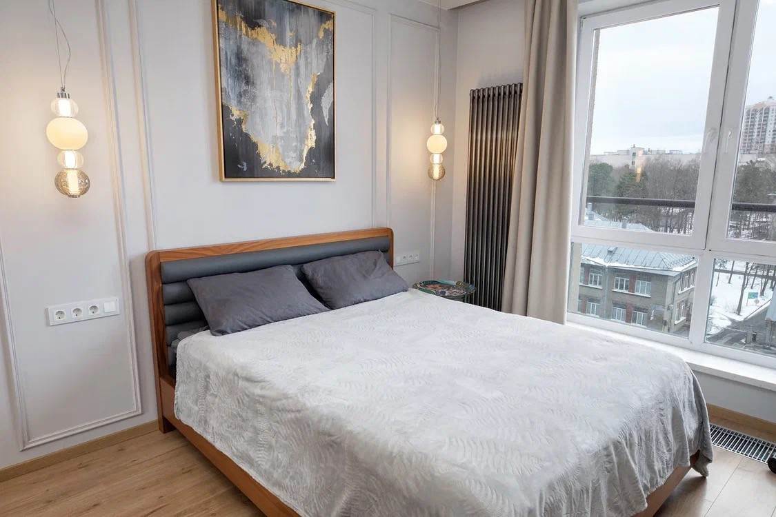 Отделка в светлых спокойных тонах. Стены- обои под окраску.