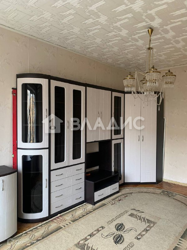 В одной из комнат установлен кондиционер, есть необходимая мебель: модульная стенка со шкафами и полками. Вторая комната без мебели.