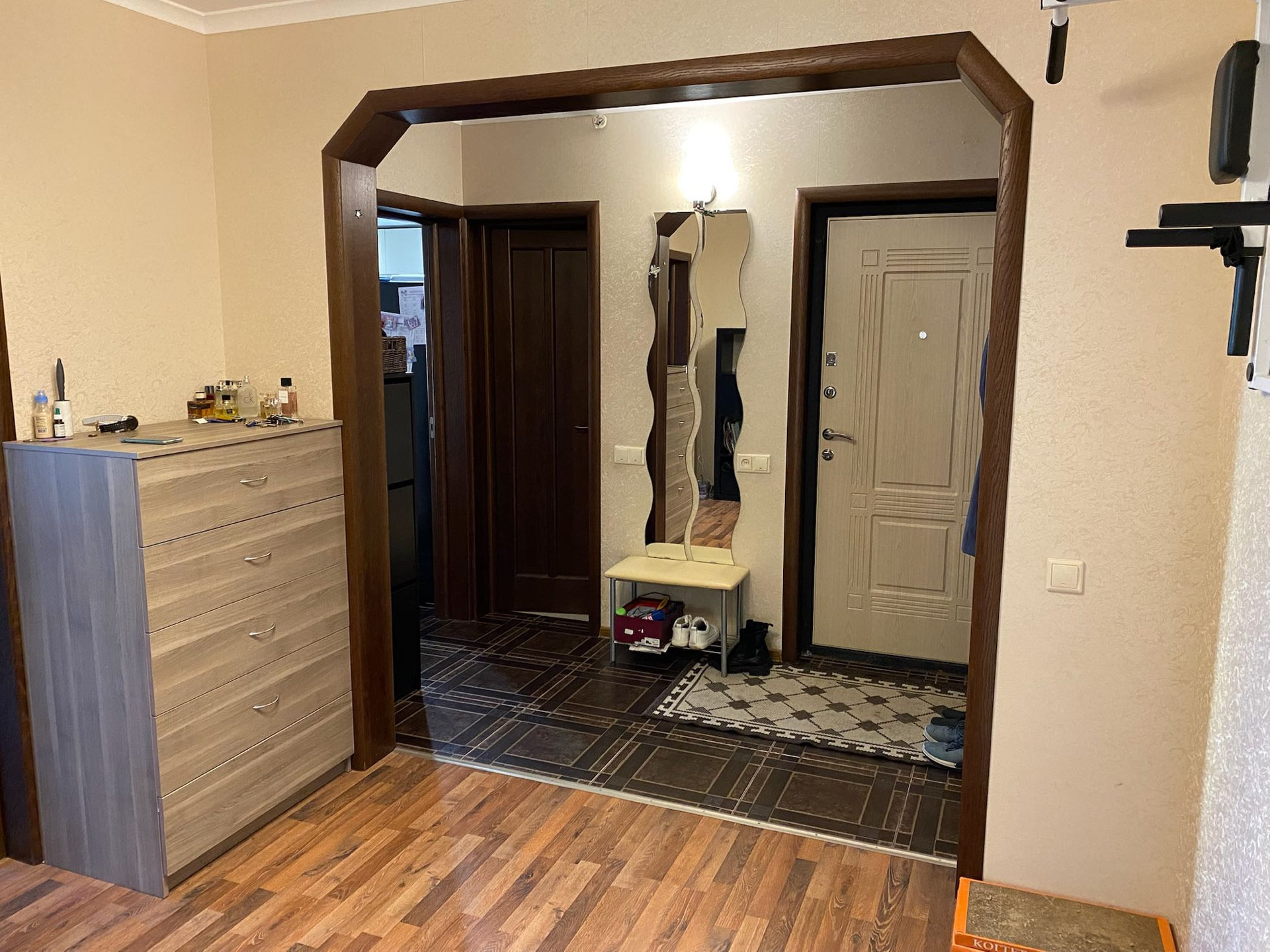 Два балкона. Большие комнаты (14*23+25 м2). Идеально ровные стены. Потолки не натяжные. Полы плитка и ламинат.