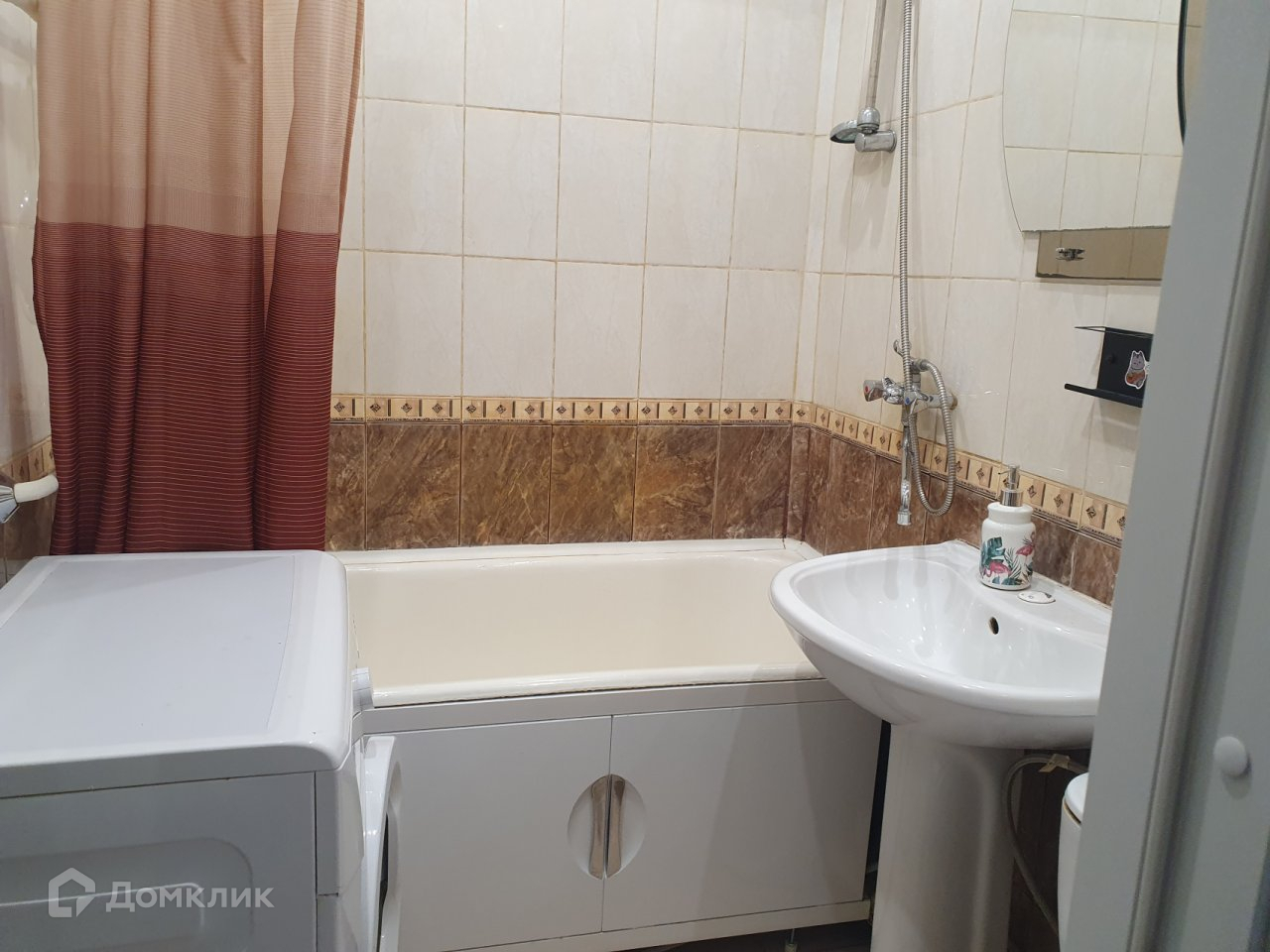 Санузел  совмещенный  . Установлена качественная сантехника  и выложен кафель, потолок  подвесной  с красивым освещением.