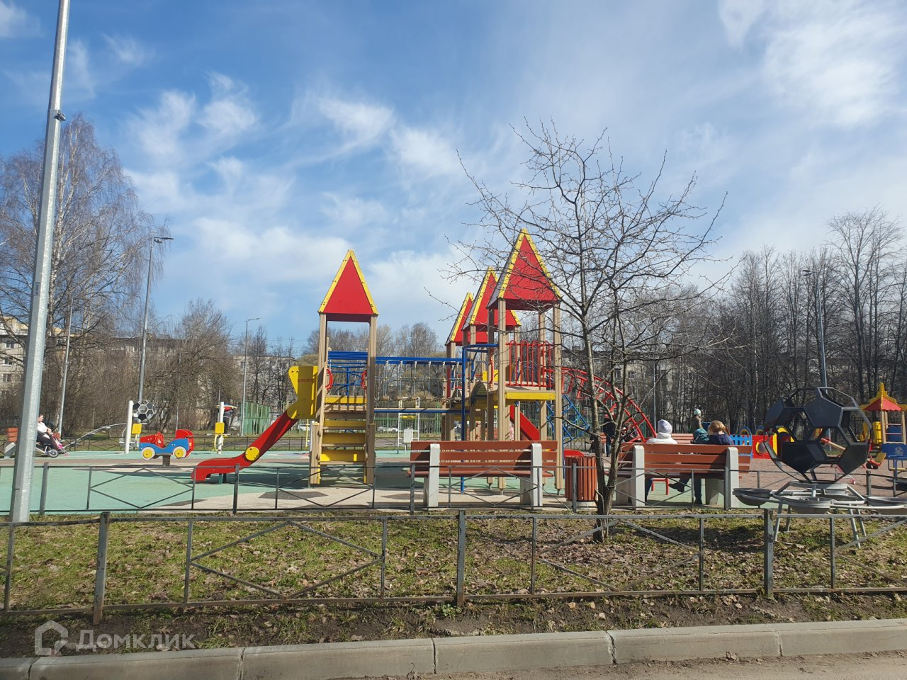 Во дворе    новая детская площадка,  спортивная  площадка, школа и детский  сад, что позволяет  детям безопасно и самостоятельно  добираться .