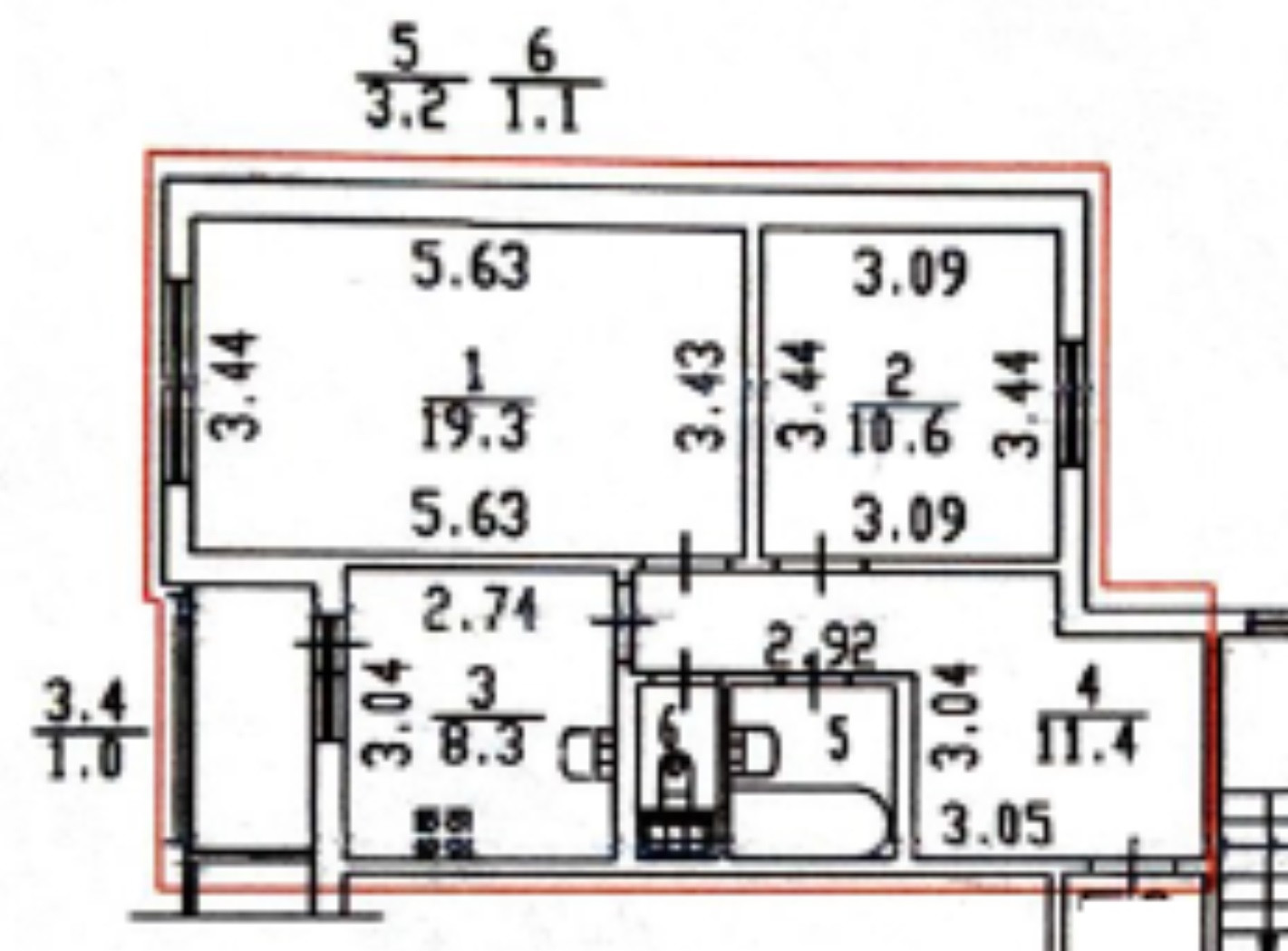 Общая площадь 53.9 м2