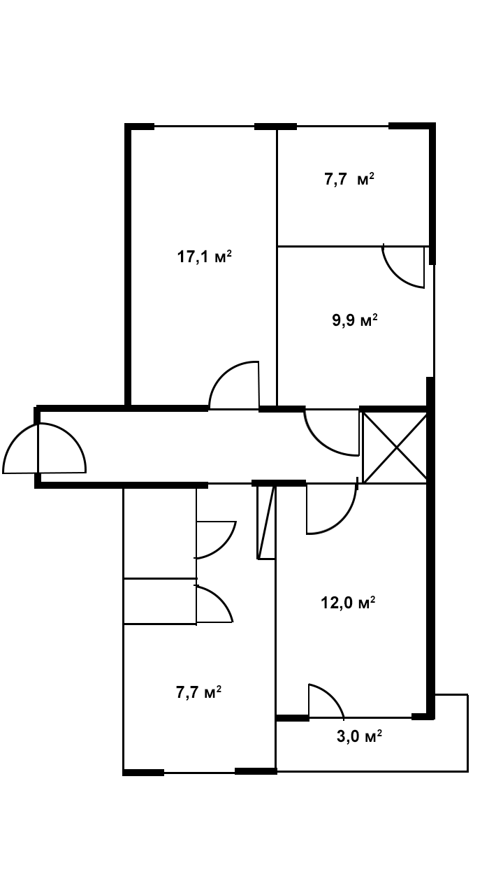 1комната-18м2, 2 комнаты смежные 7 и11м, комната с лоджией 11м2, кухня7, 7м2.Ванная, туалет раздельны, в конце коридора гардеробная 3,5м2. Мебель оставим, лоджия застеклена, утеплена.