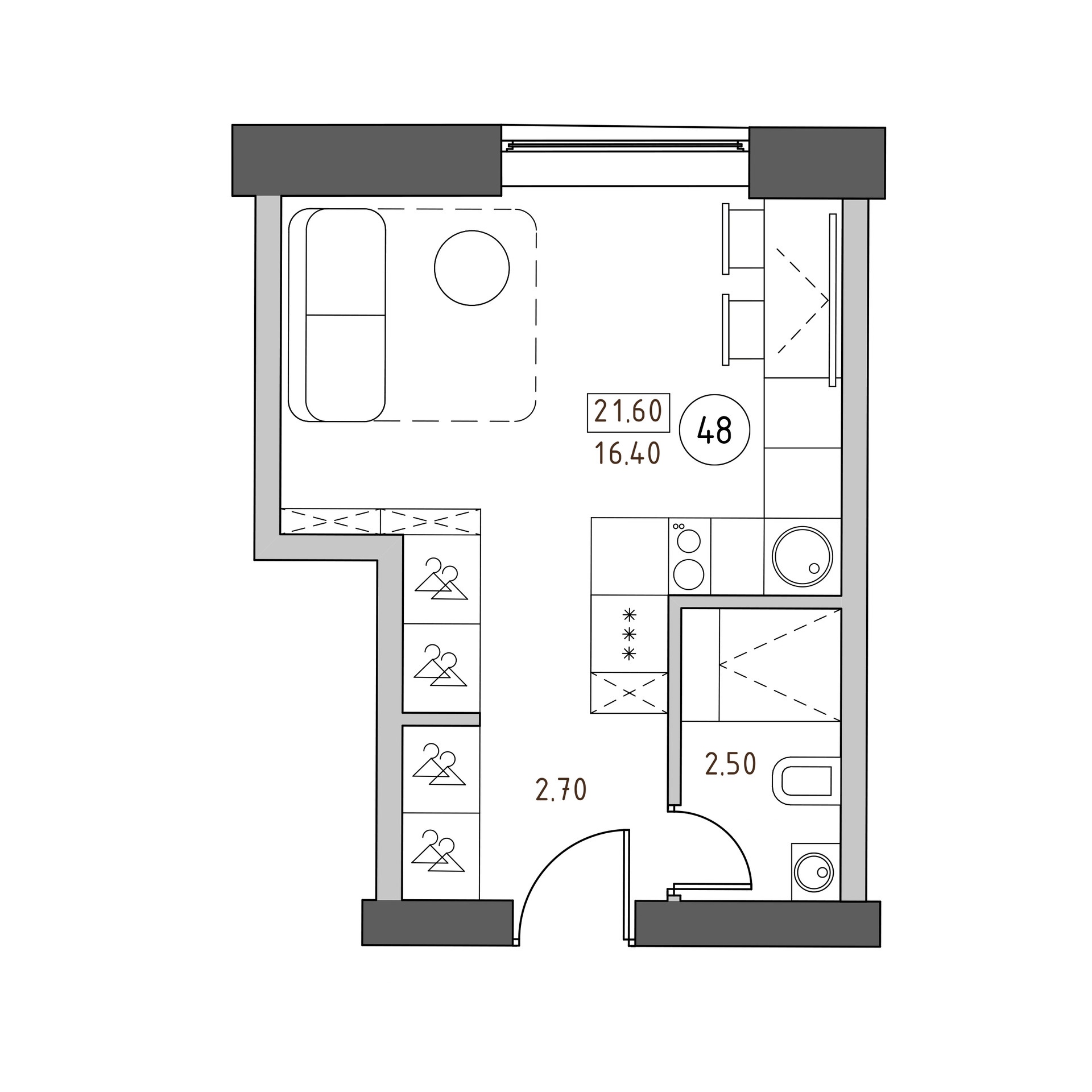 Общая площадь 21.6 м2