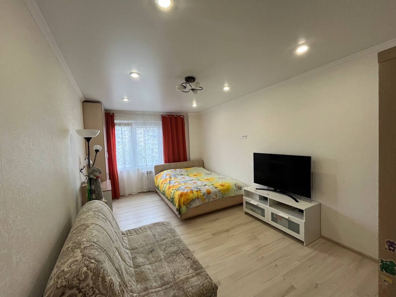 Комната просторная, светлая.