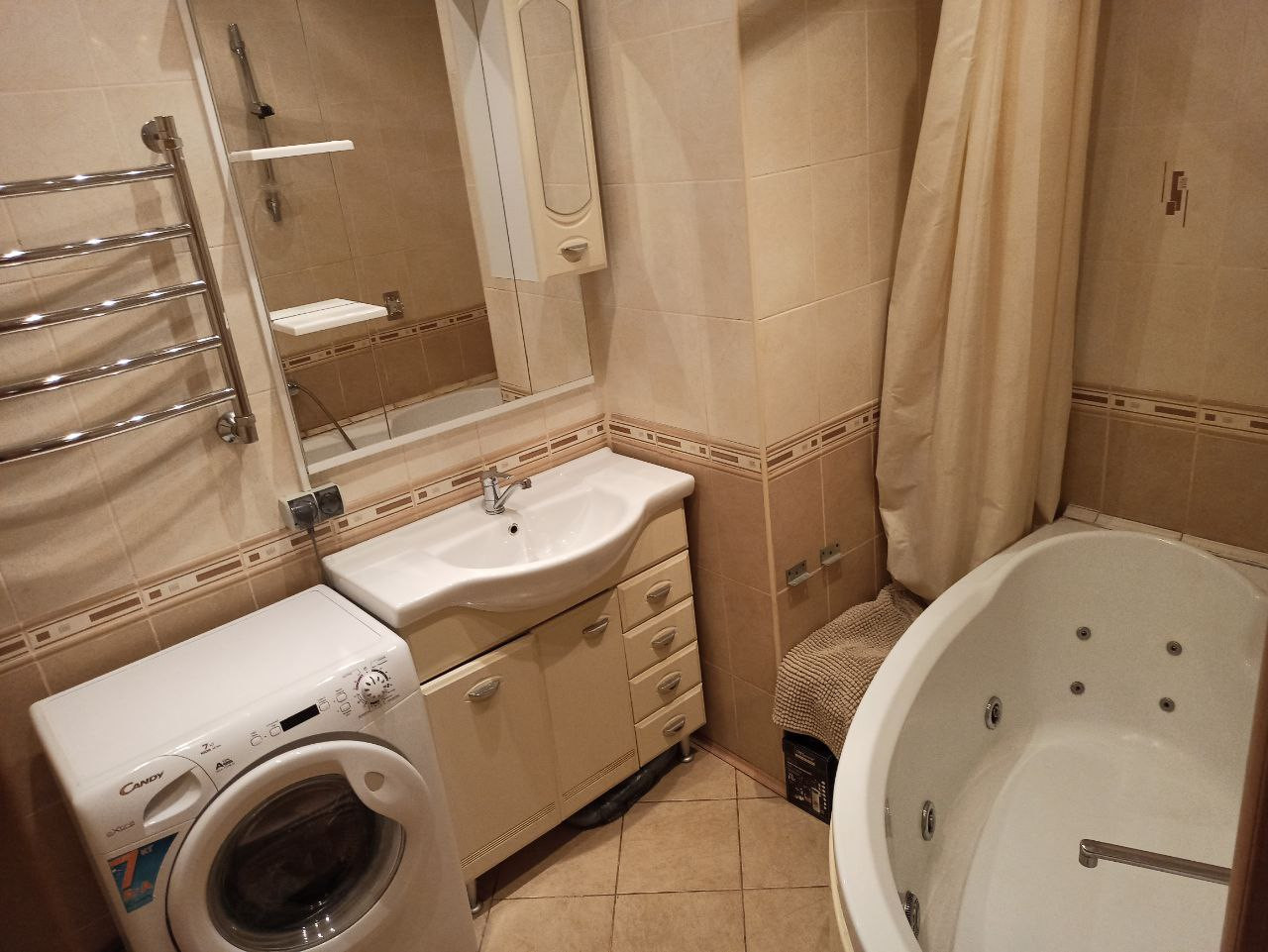 Квартира с качественным ремонтом и высокими потолками, окна выходят на Восток, комната-правильной формы и достойного метраж-17кв.м., шикарная вместительная кухня со встроенным гарнитуром и бытовой техникой-13кв.м., застекленный полноценный балкон-6 кв.м.! (с двумя выходами из кухни и комнаты), СУР, вместительная ванная комната с джакузи- 4,9 кв.м,. большая квадратная прихожая со встроенными шкафами и местами хранения вещей.