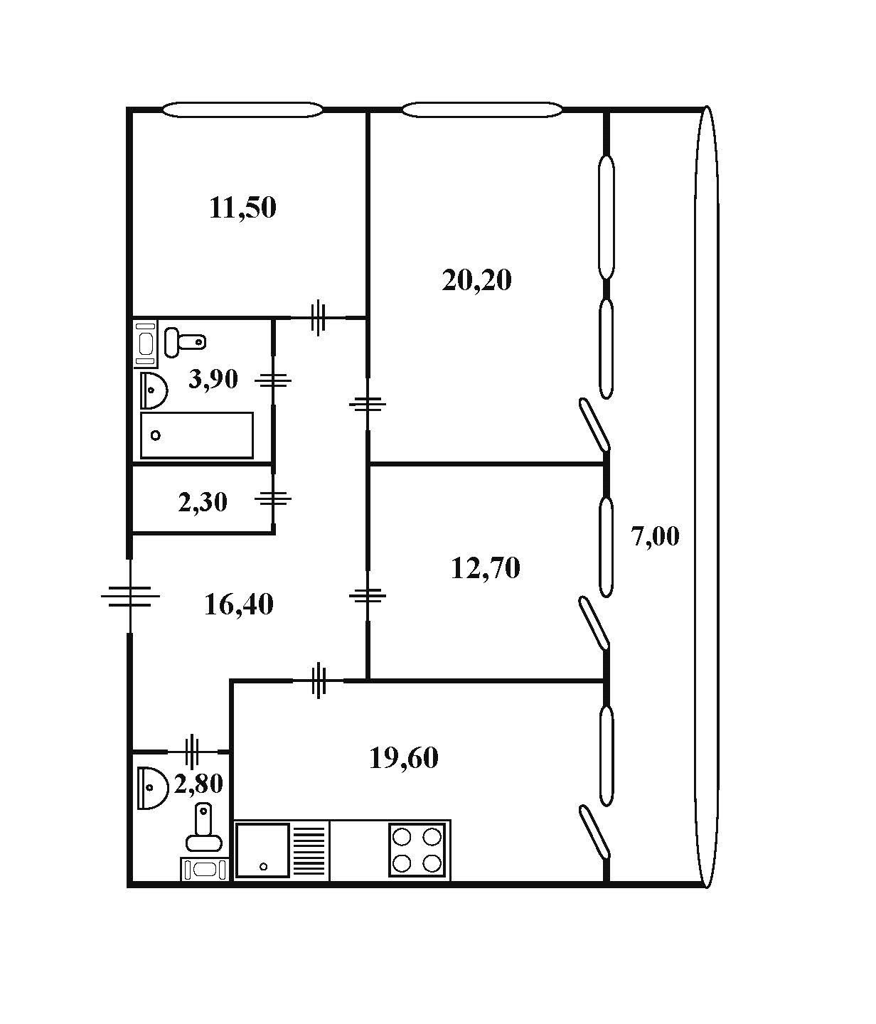 3-комнатная квартира, 95 м2, этаж 3 / 9, на продажу в Санкт-Петербурге, Кременчугская улица, 13к2