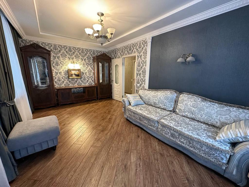 Удобная планировка: кухня-гостинная, три изолированные комнаты (гостинная, спальня и кабинет), два санузла. В квартире произведён качественный ремонт. Дом бизнес-класса. Закрытая территория, паркинг.