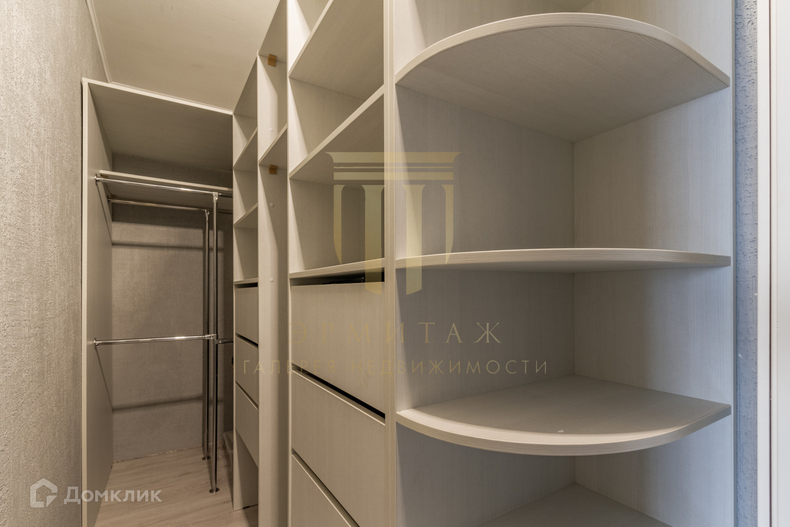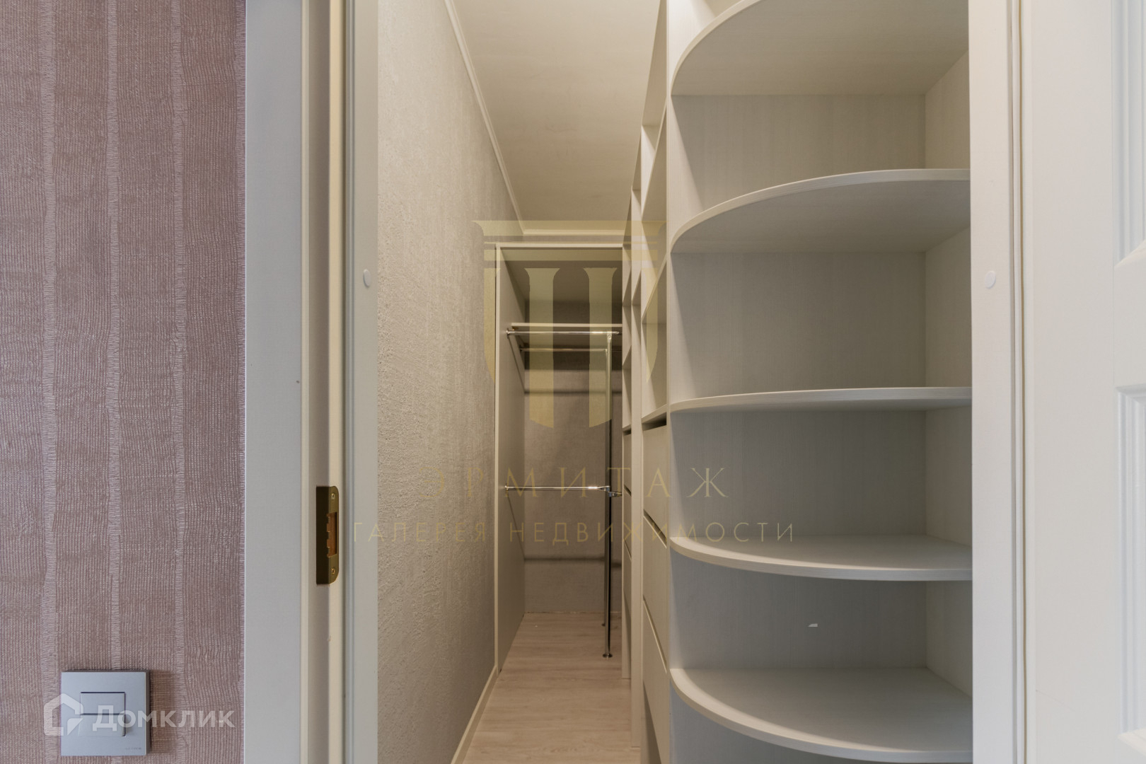 Помимо встроенного гардеробного шкафа, удобно расположенного в коридоре, в квартире есть отдельная вместительная гардеробная комната.
