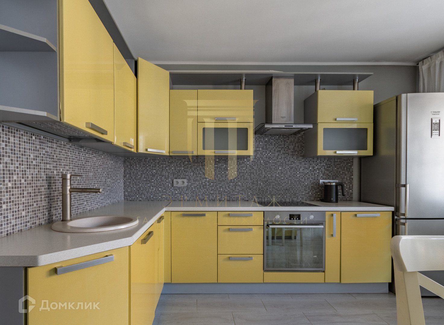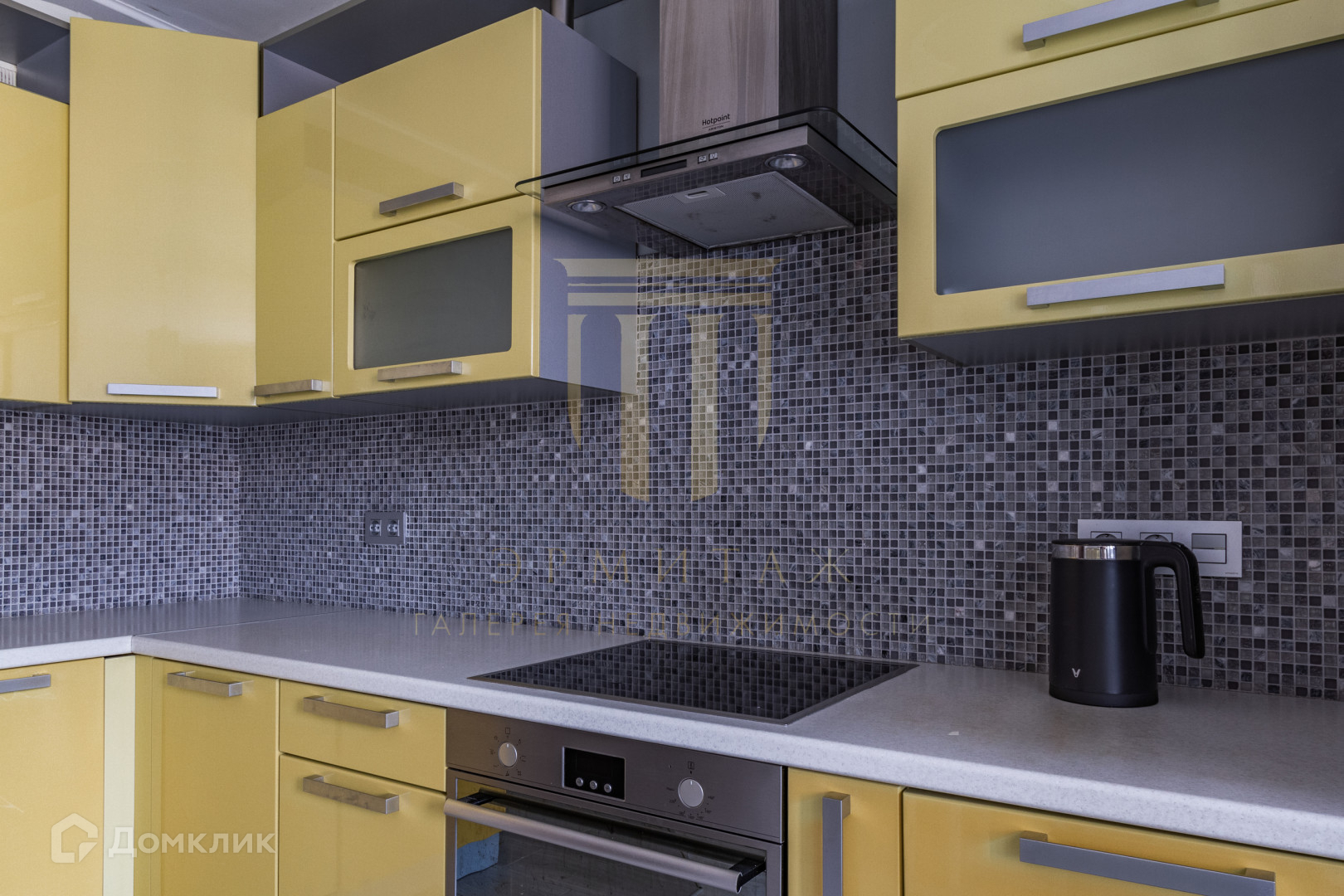 На кухне присутствует бытовая техника фирм Hotpoint-Ariston, Electrolux, Bosch.