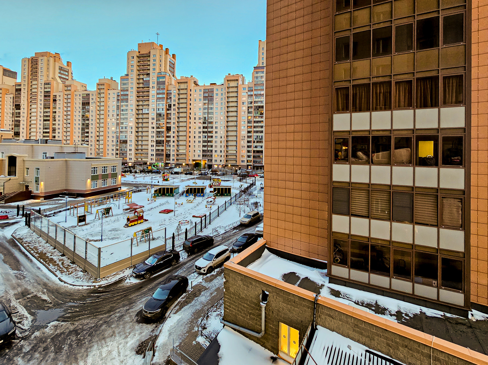 Громадные супермаркеты в одном шаге, магазины, парикмахерские и обслуживающие бизнес на первых этажах комплекса. Инфраструктура развита и активно развивается. Прямо во дворе детский сад, в соседнем дворе школа.