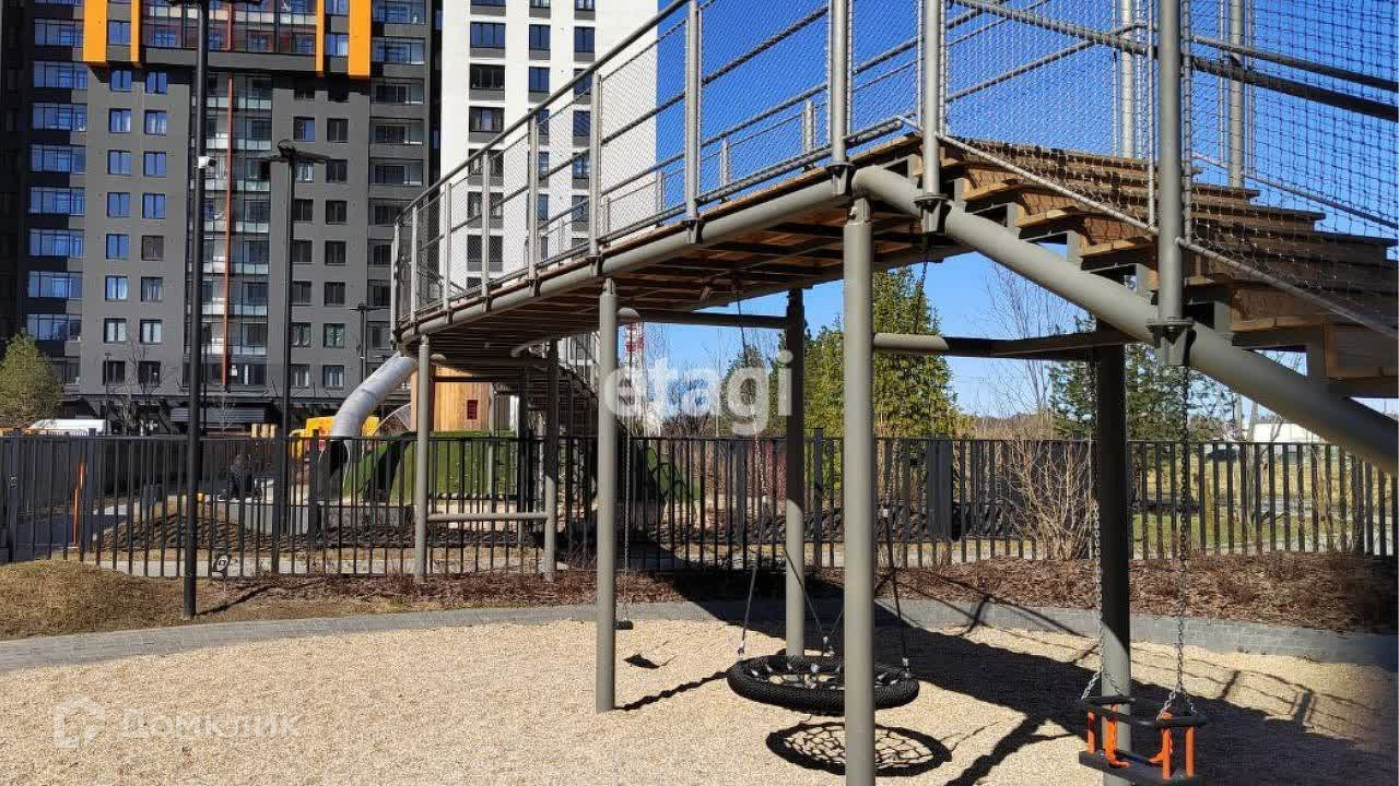 Оборудование детских площадок собрано одной из лучших мировых компаний в области производства детских площадок в Германии из прочной древесины (лиственница, дуб). На детской площадке парящий мост с подсветкой, ручьи с запрудами, развивающие детские арт-обтекты.