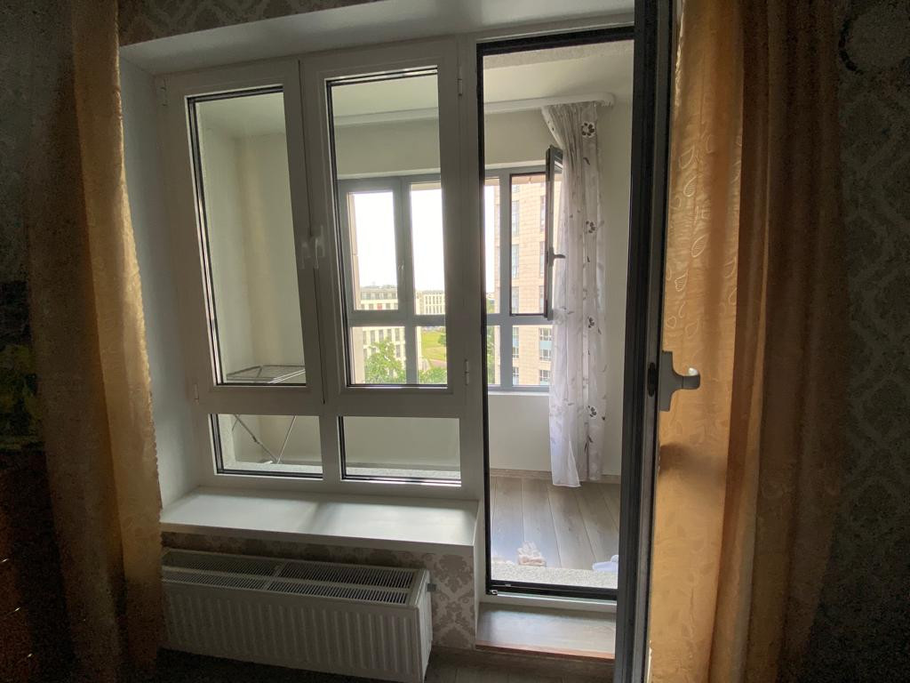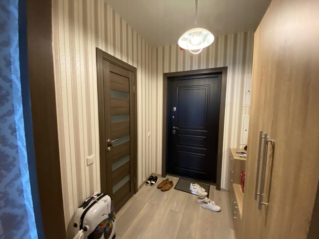 В квартире сделан современный, качественный ремонт, продается полностью укомплектованная с мебелью и техникой: встроенная кухня с духовым шкафом, вытяжкой и варочной поверхностью, вытяжкой и СВЧ печь, холодильник и корпусная мебель: кровать 2-х спальная, платяной шкаф, стол, комод, в прихожей 4,2м2: большой шкаф и тумба с зеркалом, везде натяжные потолки. Санузел 3,9м2 совмещенный, полноценная ванная, стиральная машинка, раковина с тумбой и зеркалом. В квартире большая застекленная лоджия.