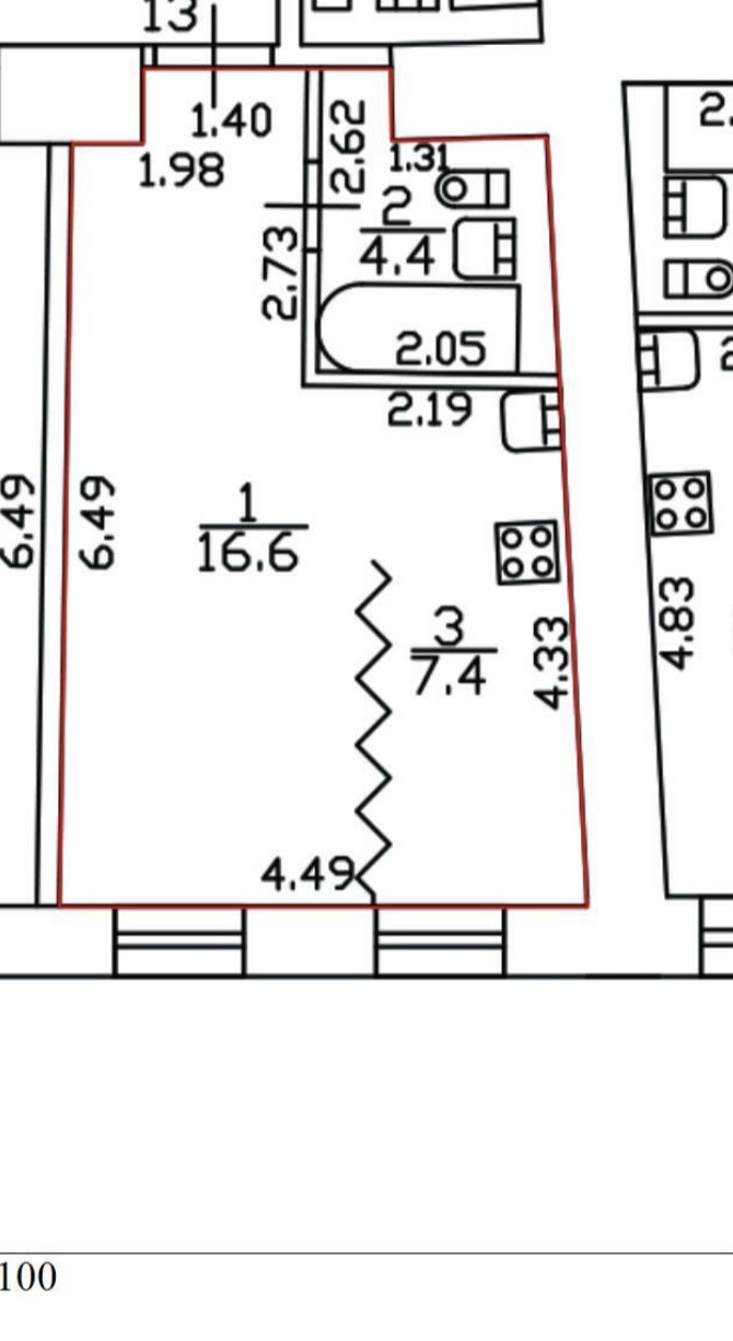 Общая площадь 28.4 м2