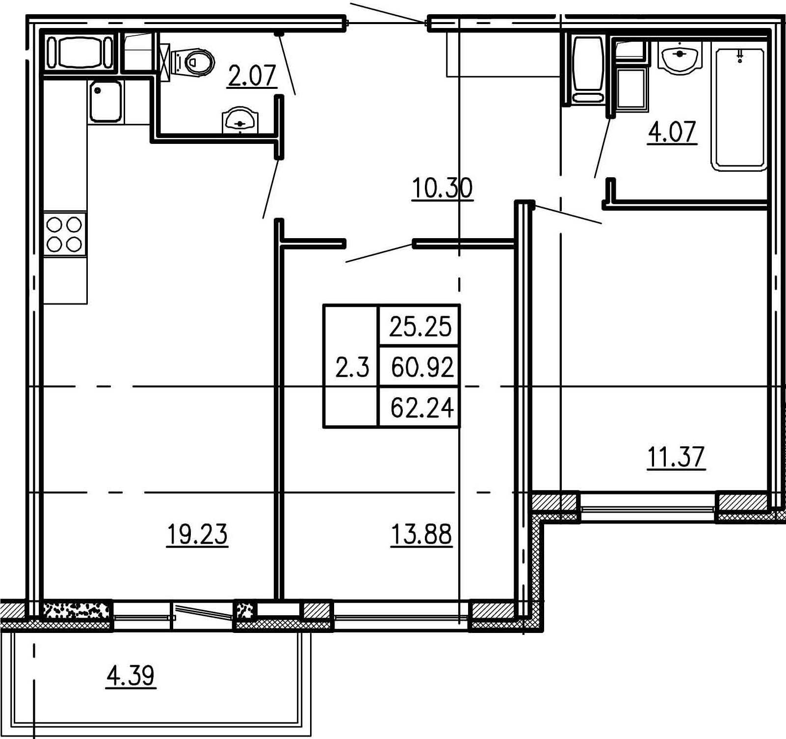 Общая площадь 62.24 м2