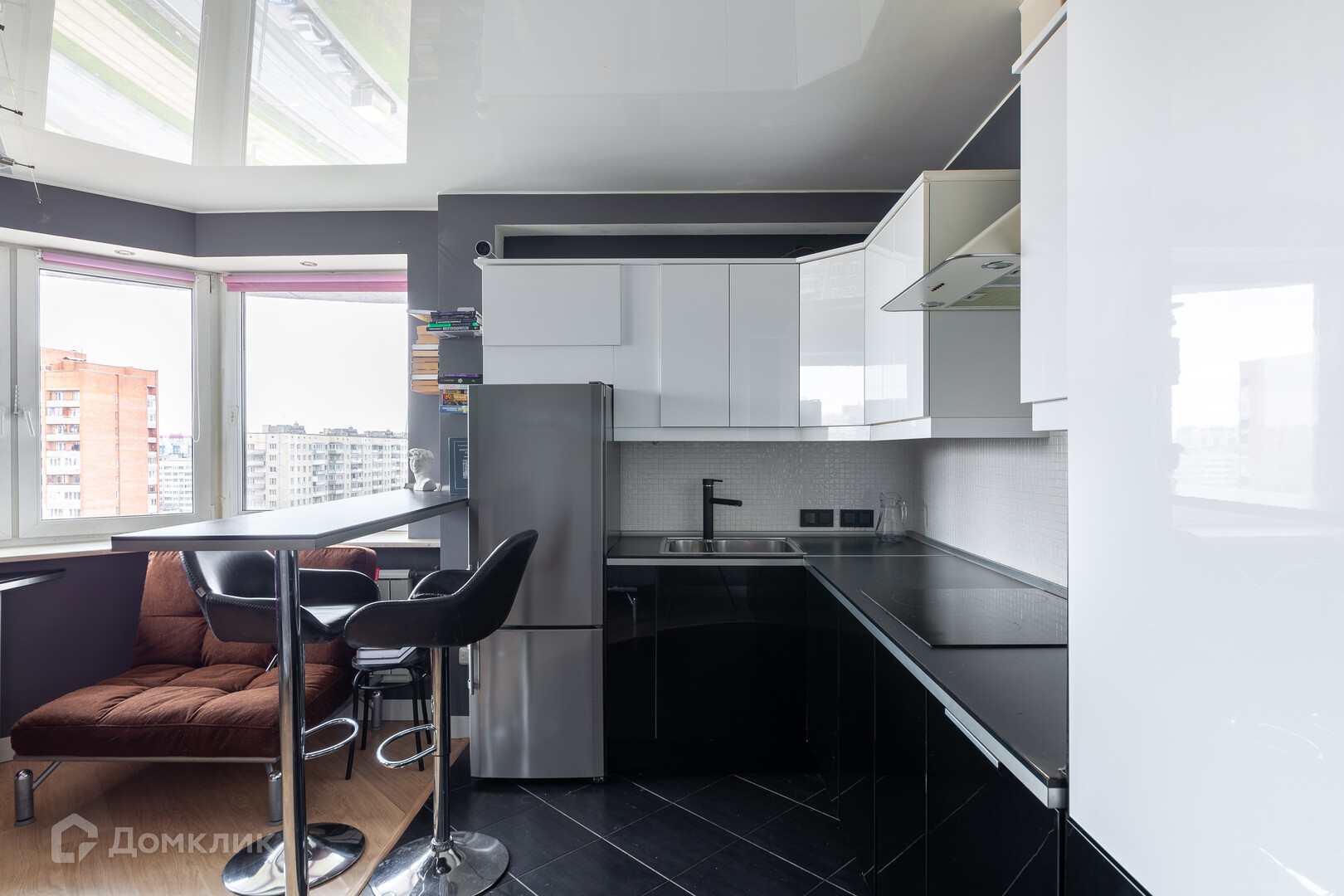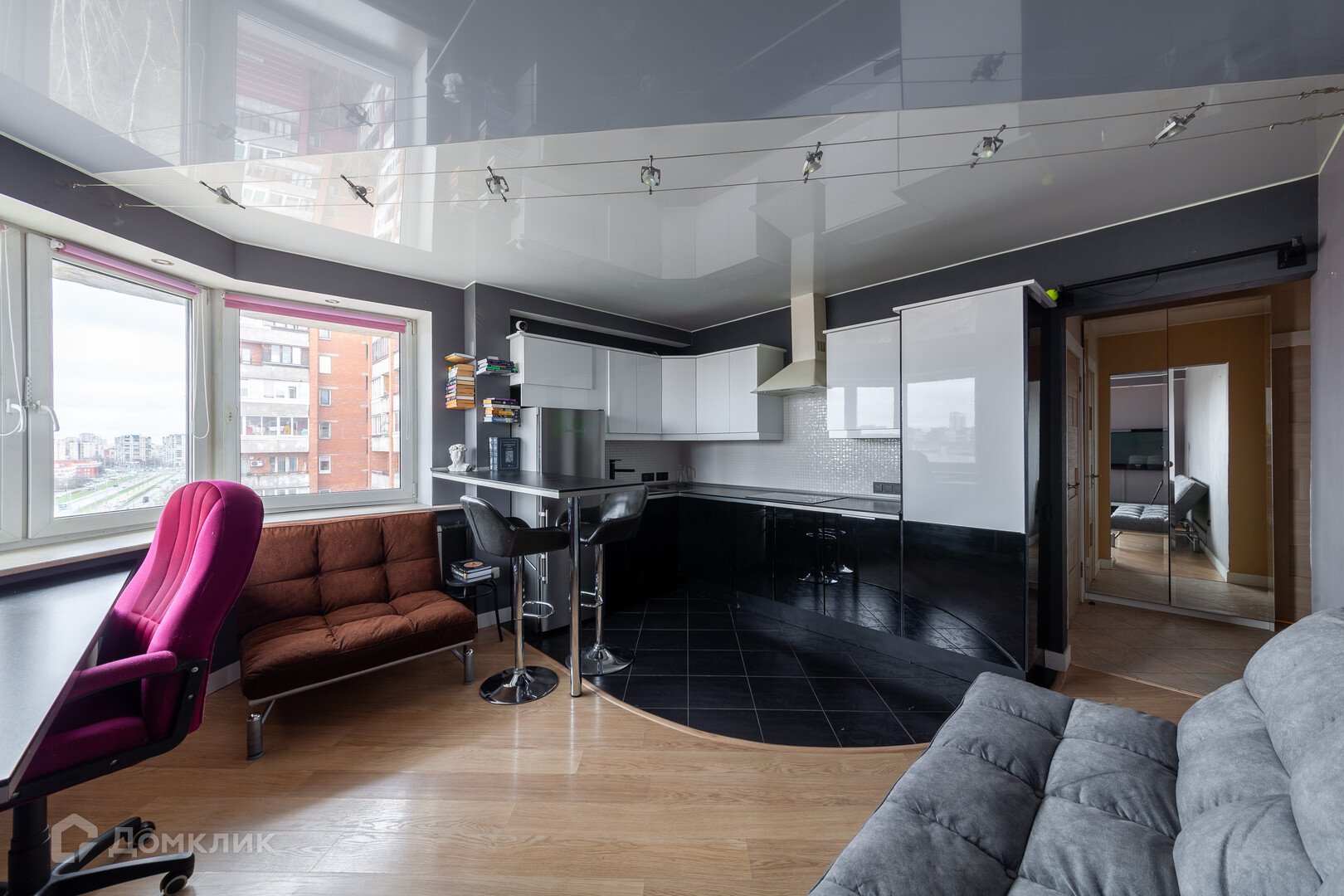 Солнечная квартира с большими окнами, благодаря которым комната наполняется светом и свежим воздухом, что способствует созданию приятной атмосферы для отдыха и работы.