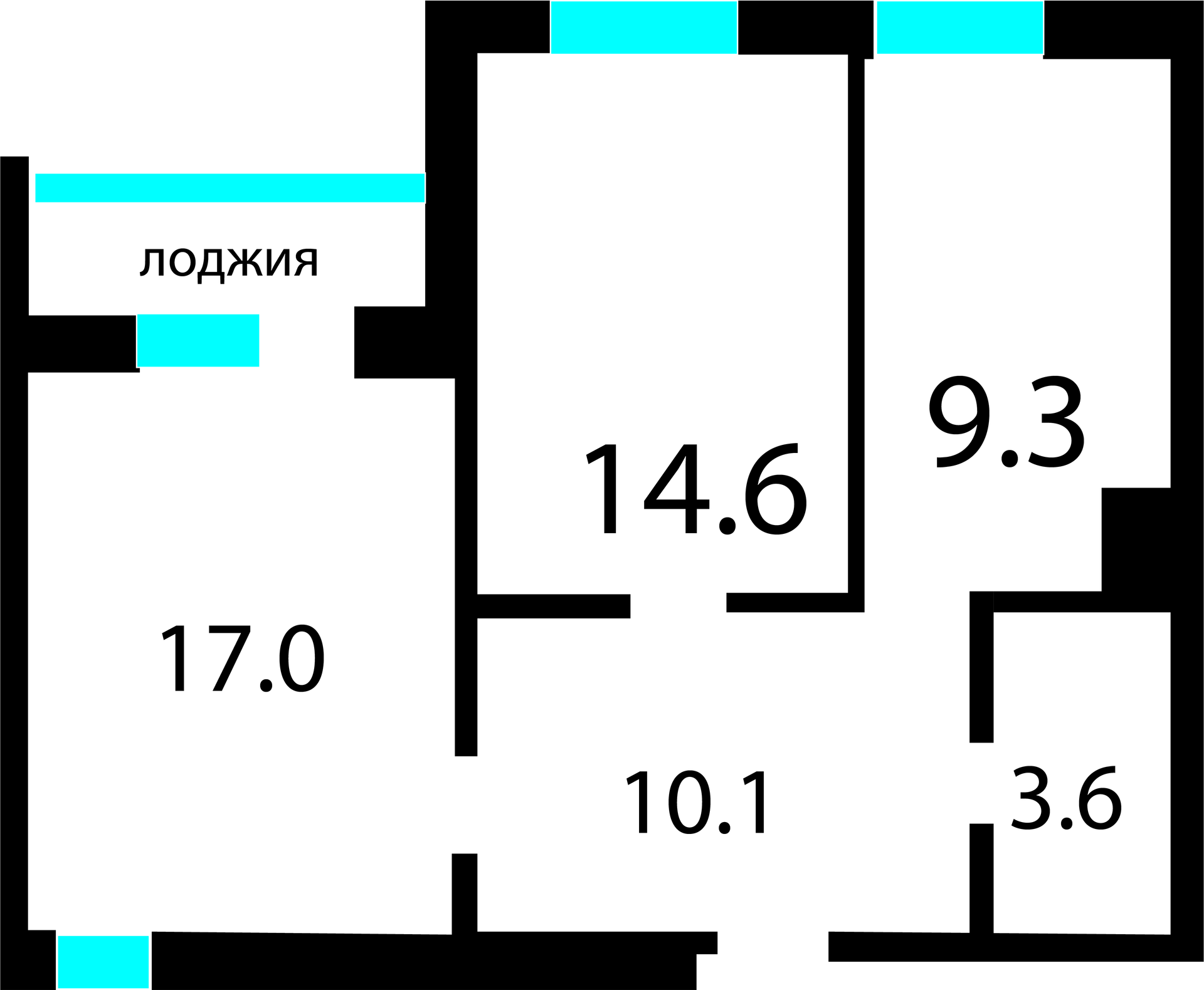 Общая площадь 55.6 м2