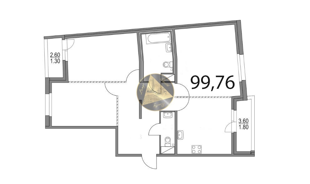 - Общая площадь квартиры 99,76 м2