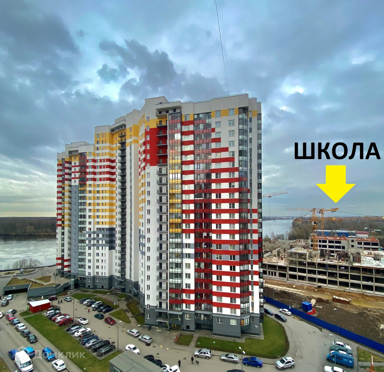 Дом находится на берегу Неву. Застройщик продумал всё до мелочей: уютное дворовое пространство, обустроенная набережная, зоны для прогулок и отдыха, спортивные и детские площадки, видеонаблюдение, подземные паркинги и множество магазинов по периметру дома.