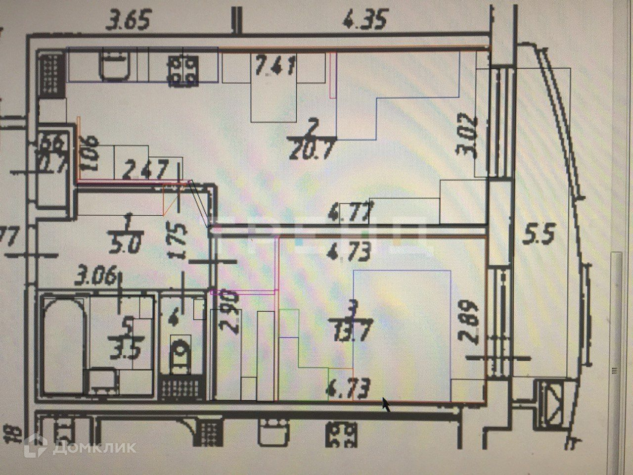 Общая площадь 44 м2