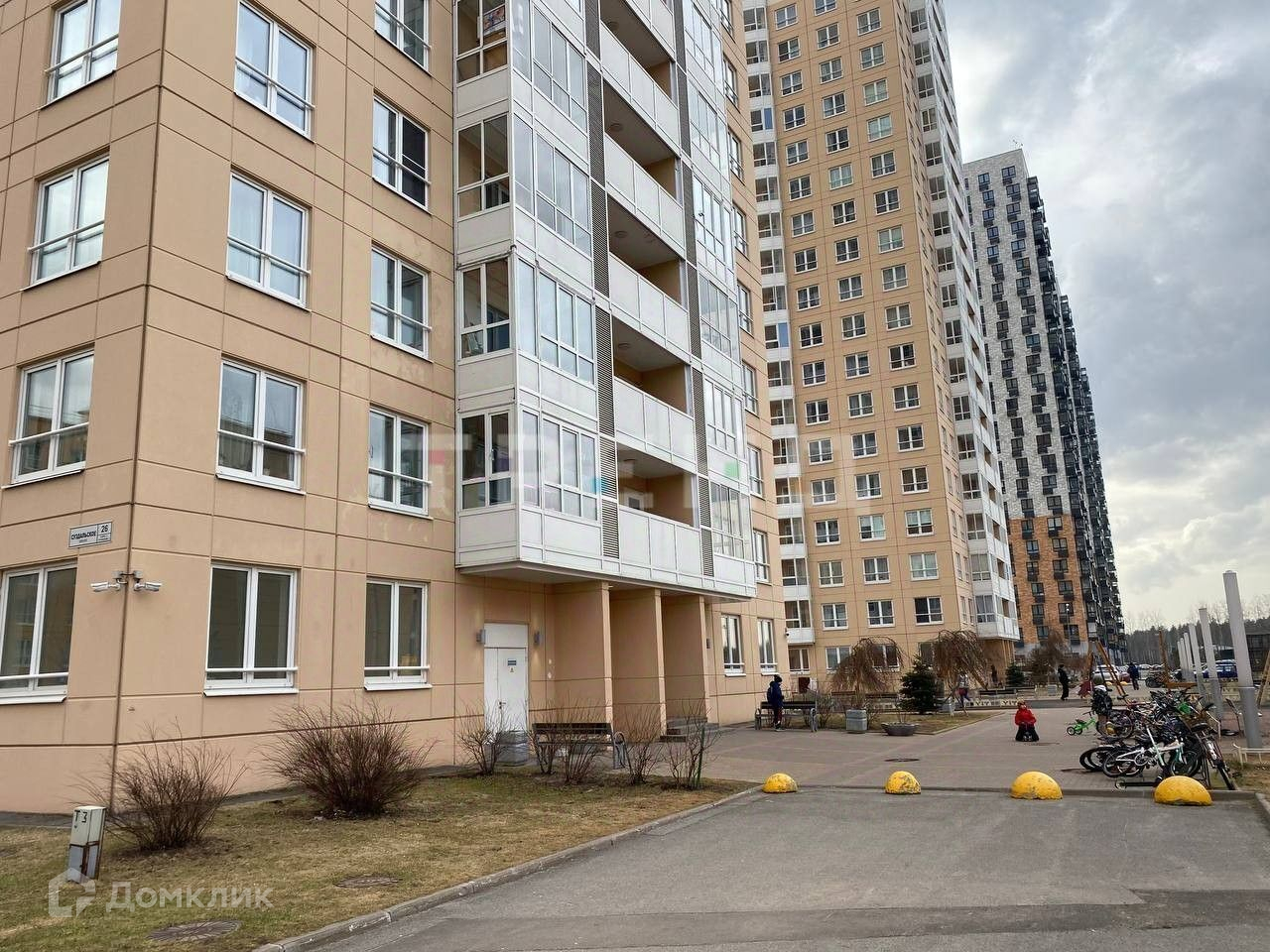 Закрытый двор. Во дворе велопарковка. Вся территория ЖК под круглосуточной охраной.