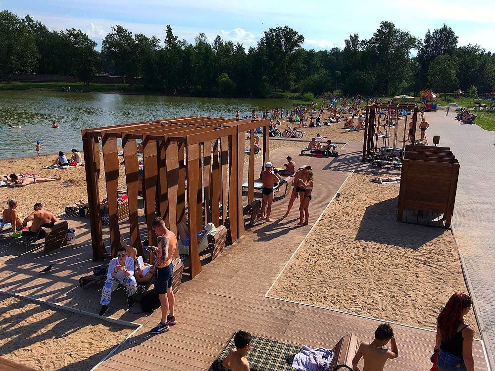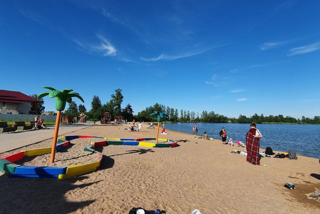Парк с озером и благоустроенным пляжом, в двух минутах ходьбы от дома.