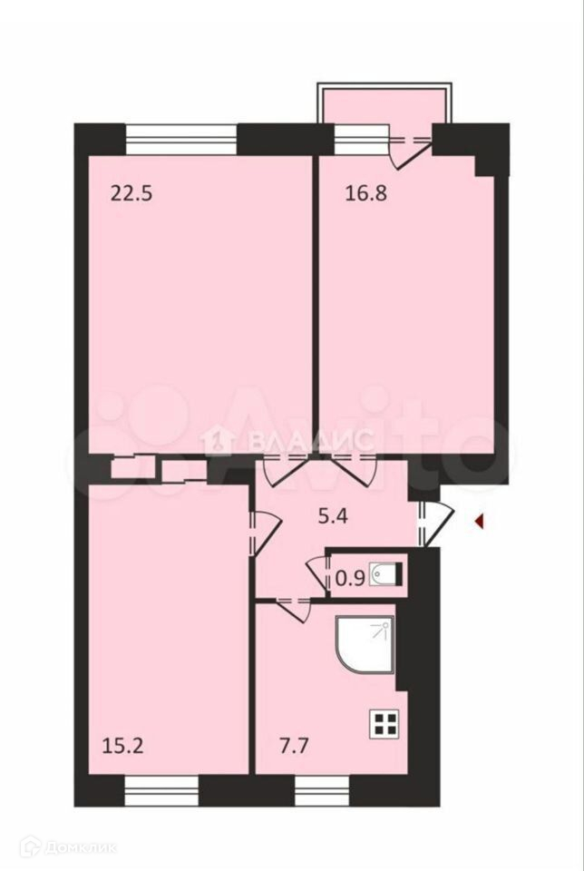 Жилая площадь 54.5 м2