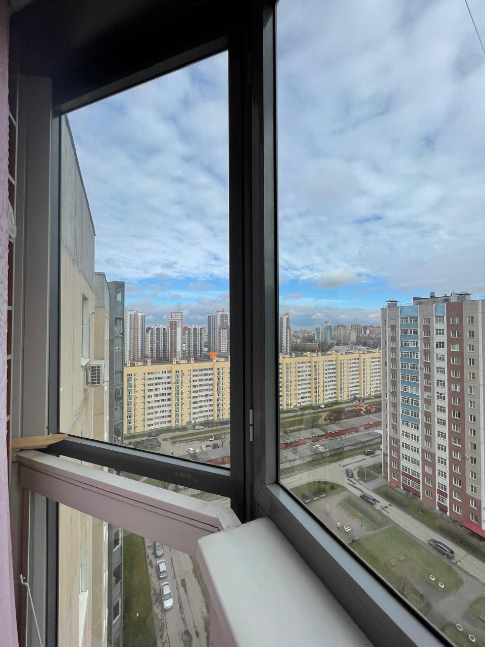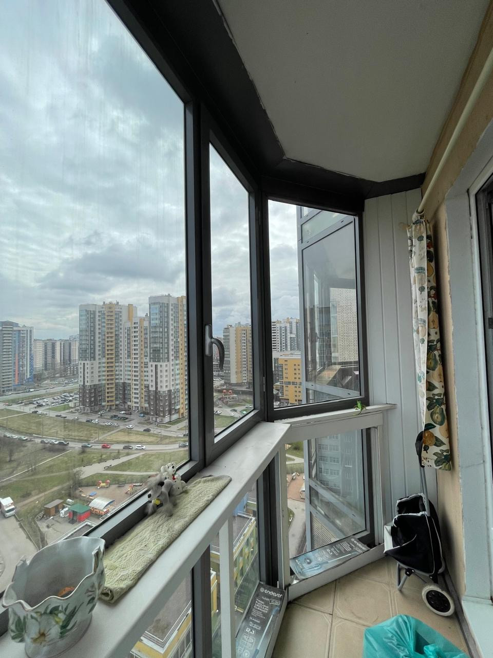 Из окон открывается хороший вид на город, есть застекленный балкон.