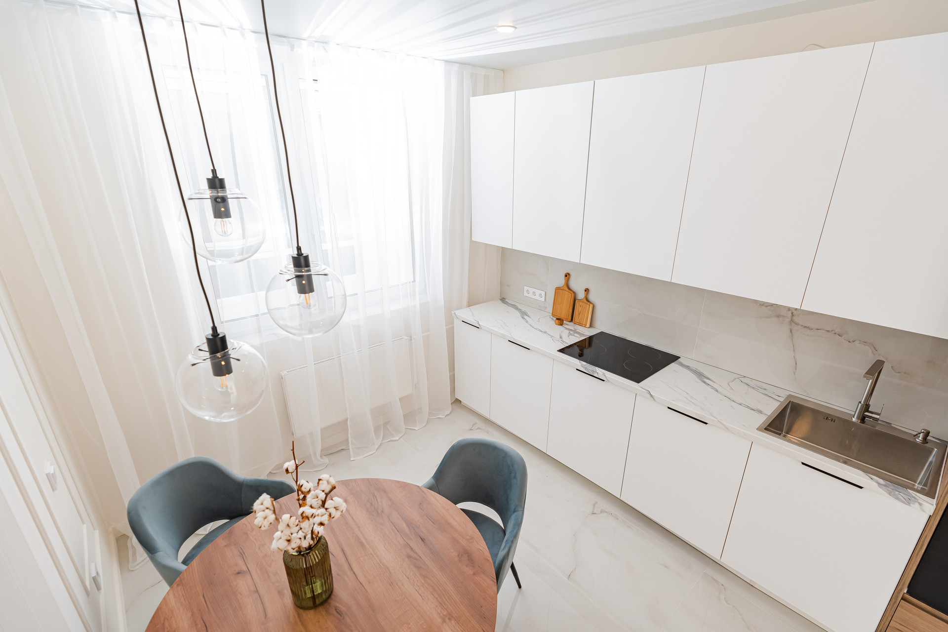 Есть абсолютно все для жизни, холодильник, варочная панель, духовой шкаф, посудомоечная машина, вытяжка, стиральная и сушильная машина, смарт ТV - 55 дюймов с Яндекс Алисой.