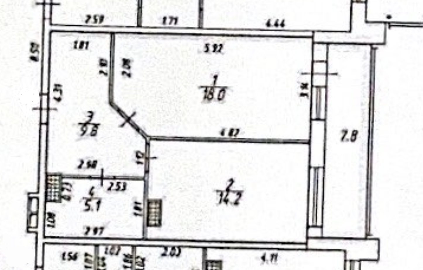Кухня-гостиная 14.2 м2. Две комната изолированная 18 м2.