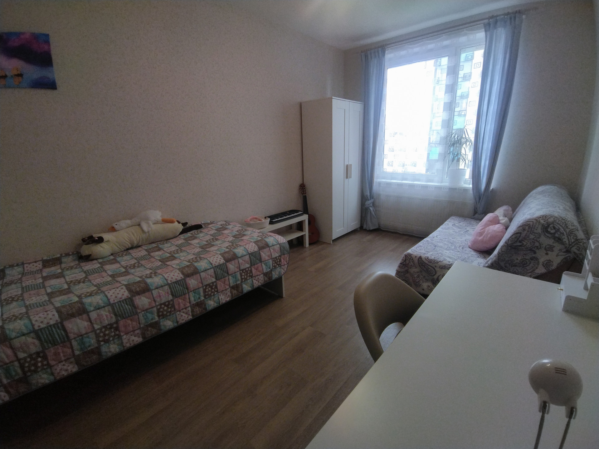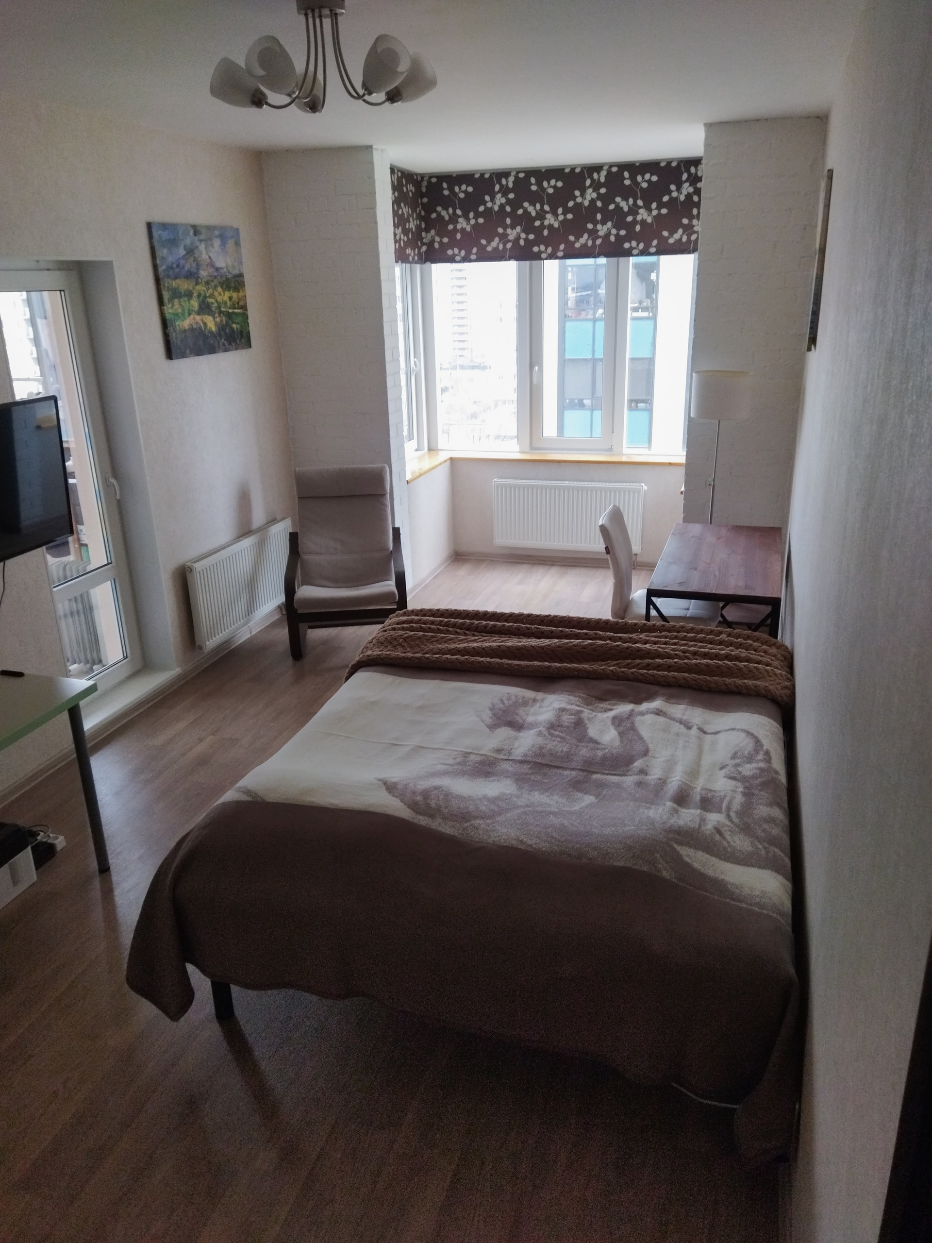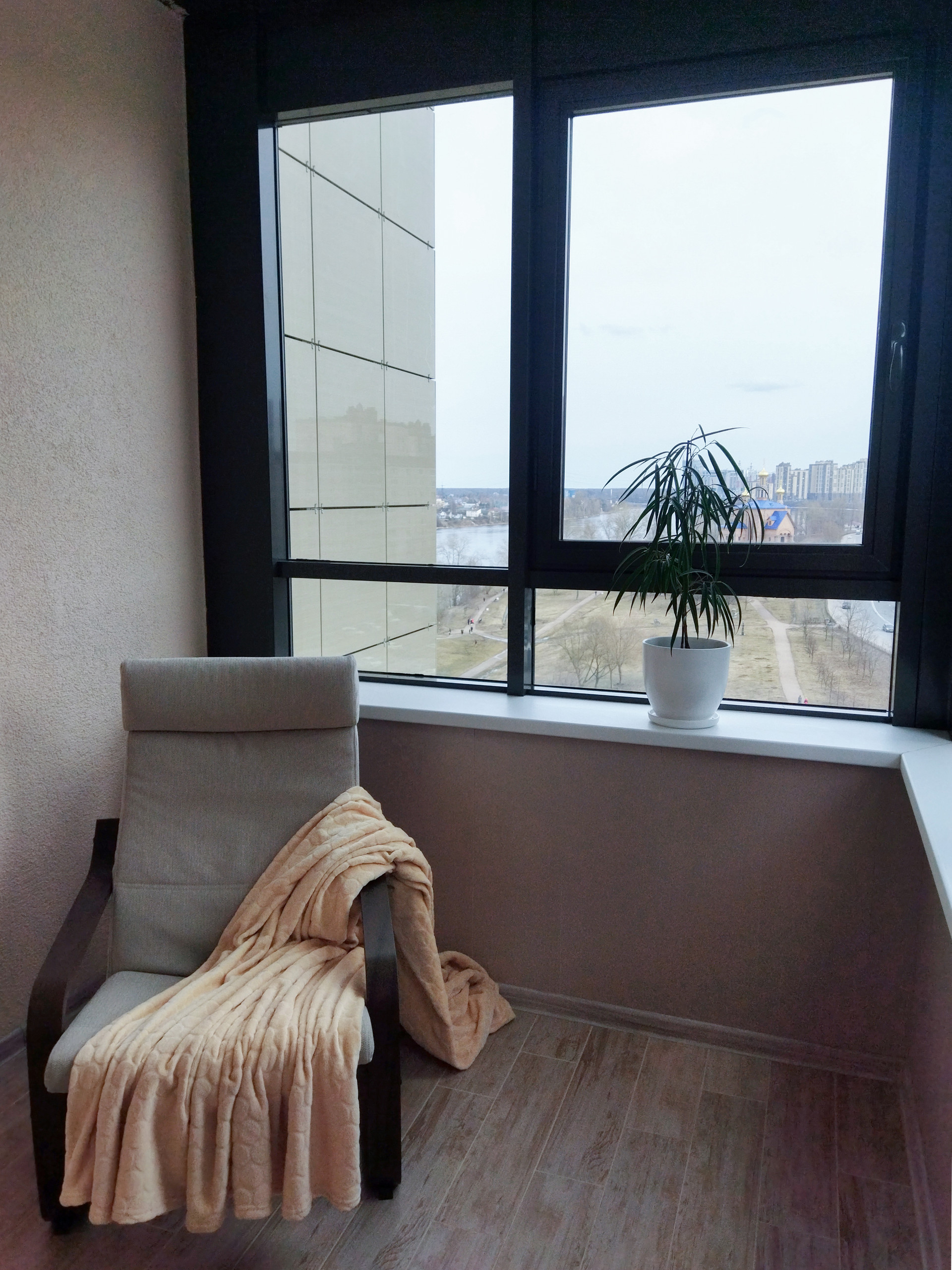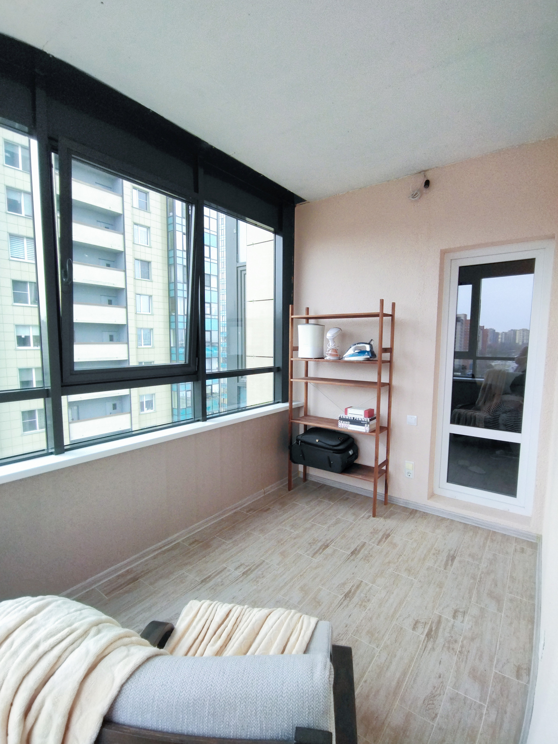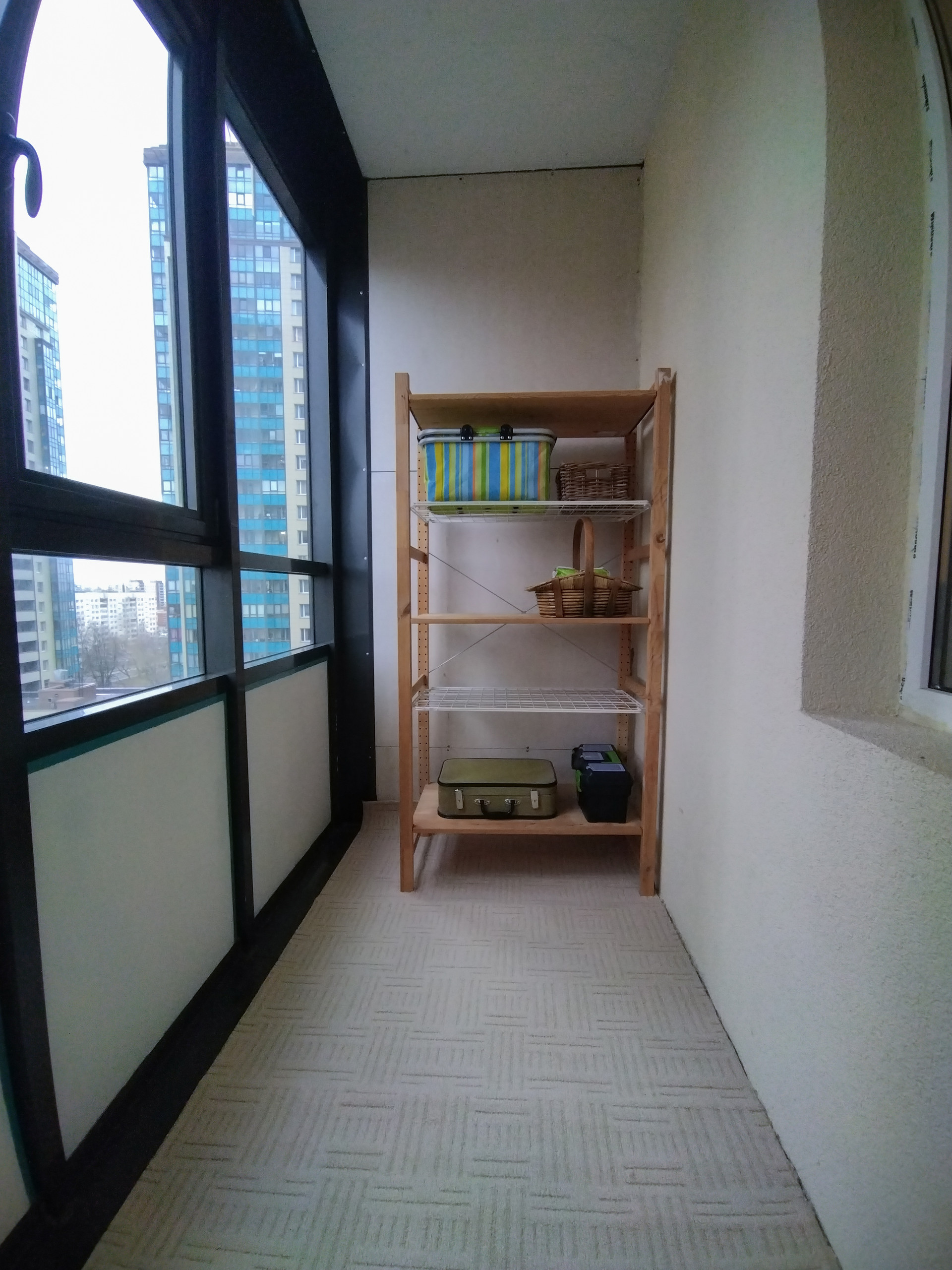 Одна из лоджий по площади - 7 квадратных метров. Многие соседи в аналогичных квартирах утеплили террасу и сделали из неё третью комнату (вы тоже можете). Мы, благодаря тёплому полу, использовали 9 месяцев в году как бытовую комнату, спортзал и зону отдыха.