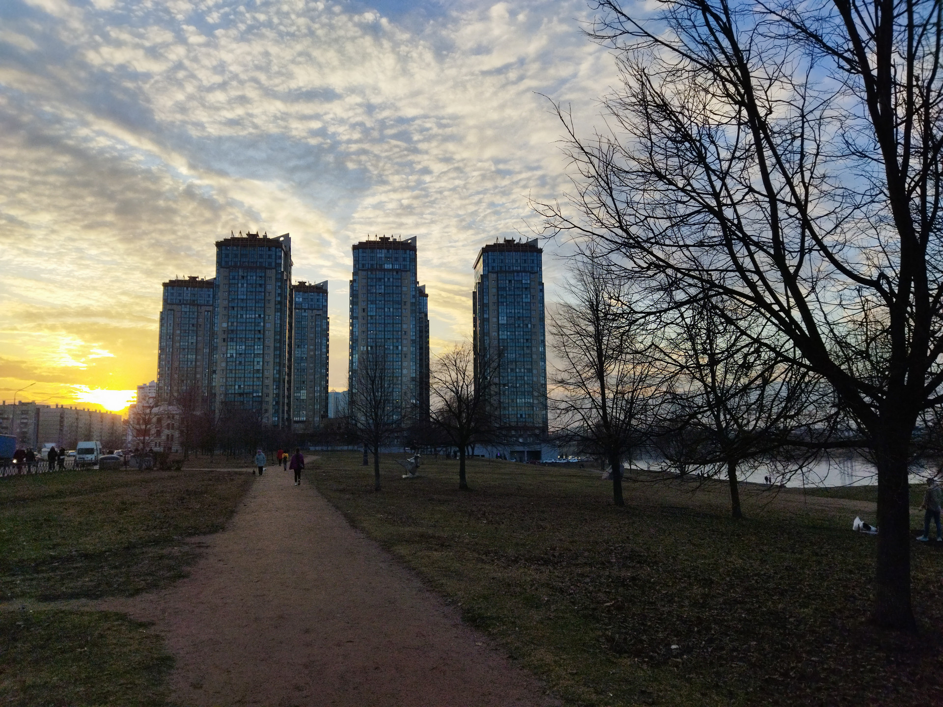 Комплекс был построен в 2015 году в парковой зоне на берегу Невы и при этом посреди обжитого и инфраструктурно развитого Невского района.