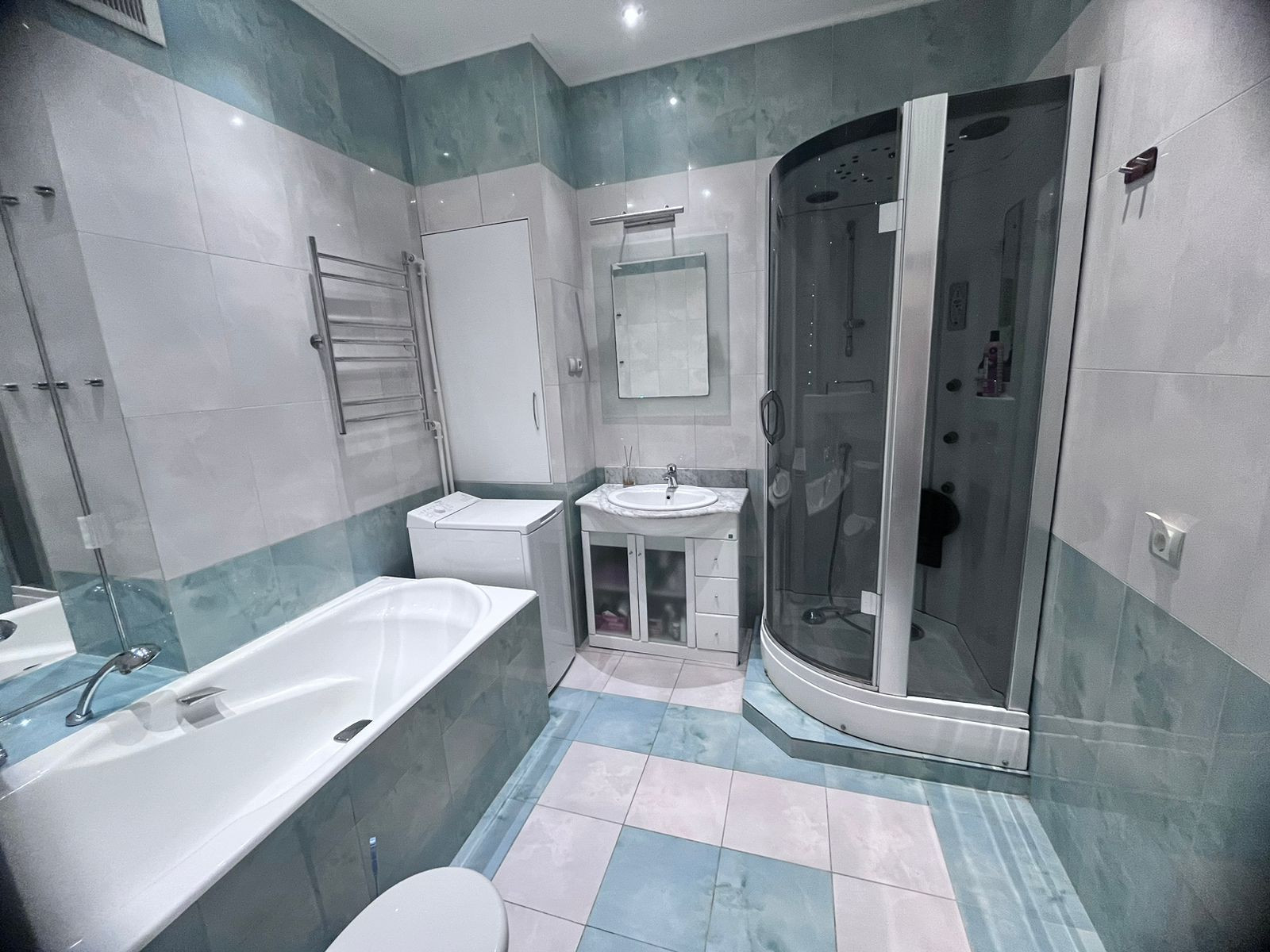 Просторная ванная с душевой кабиной.