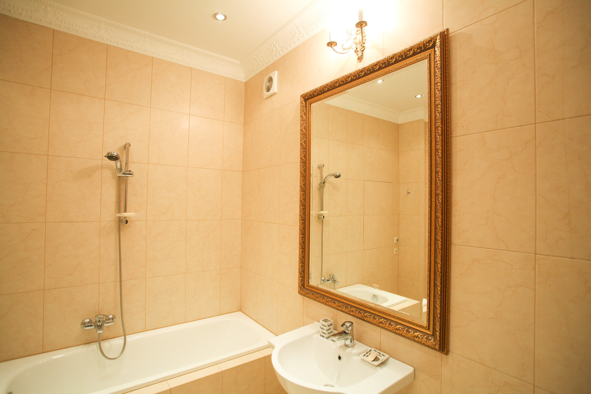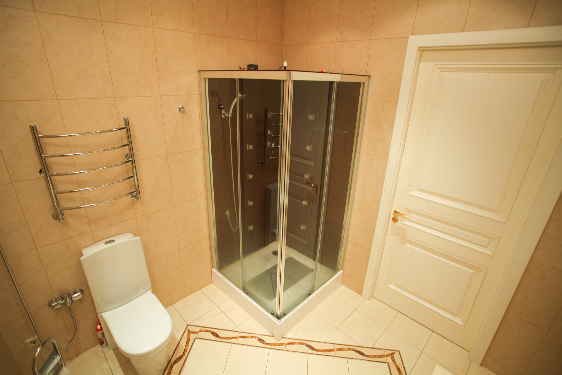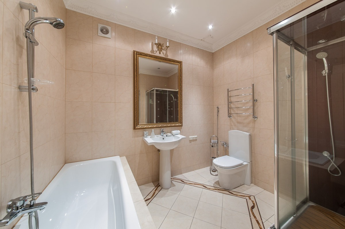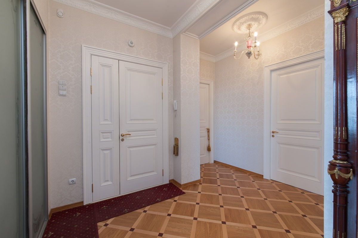 В квартире был выполнен основательный капитальный ремонт, в ходе которого вся старая штукатурка сбивалось до кирпичей, заменены все трубы отопления, горячей и холодной воды, сделана новая проводка из медного кабеля, во всех комнатах и холле настелен наборный паркет из дуба, красного дерева и клена, на кухне итальянская плитка, в каждой комнате сделана индивидуальная вентиляция с подогревом