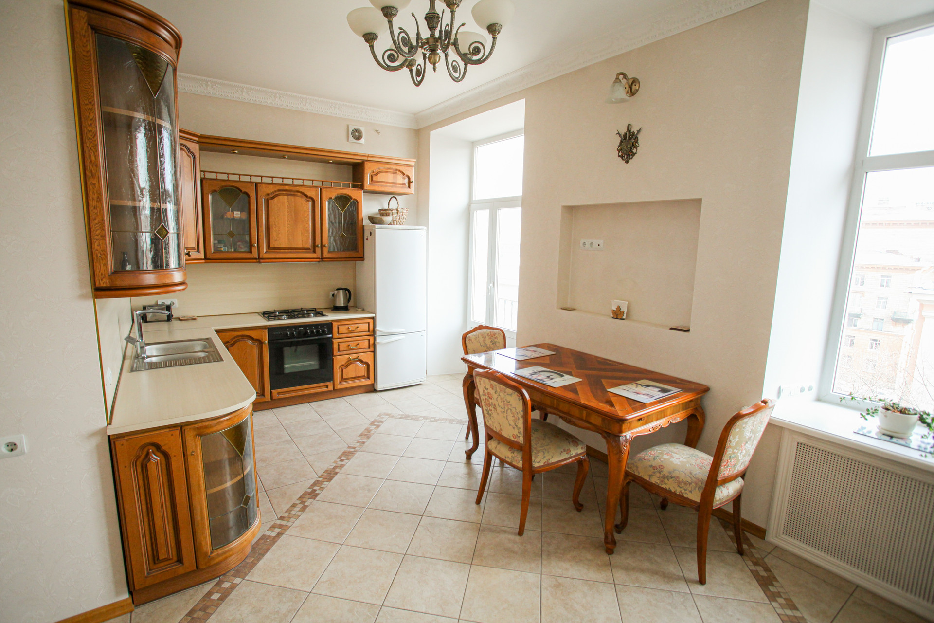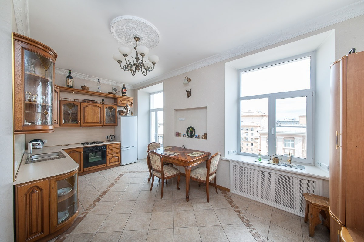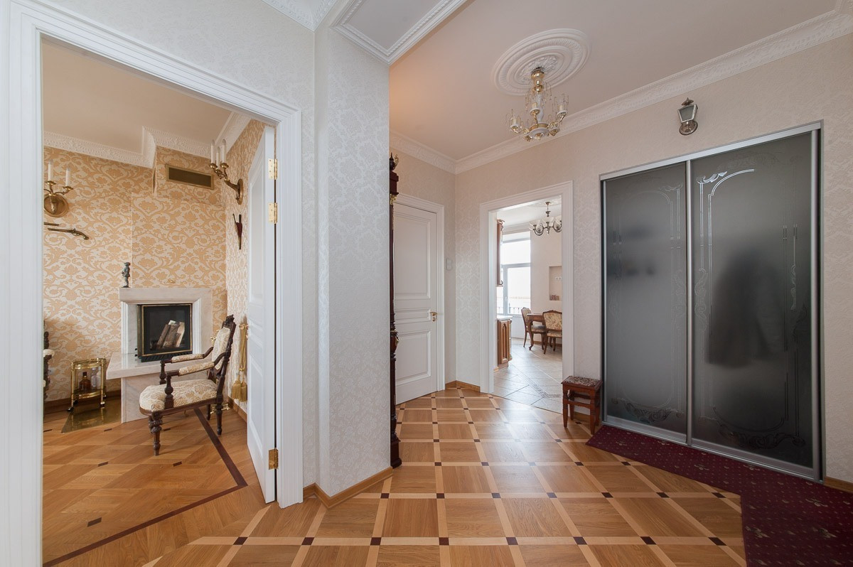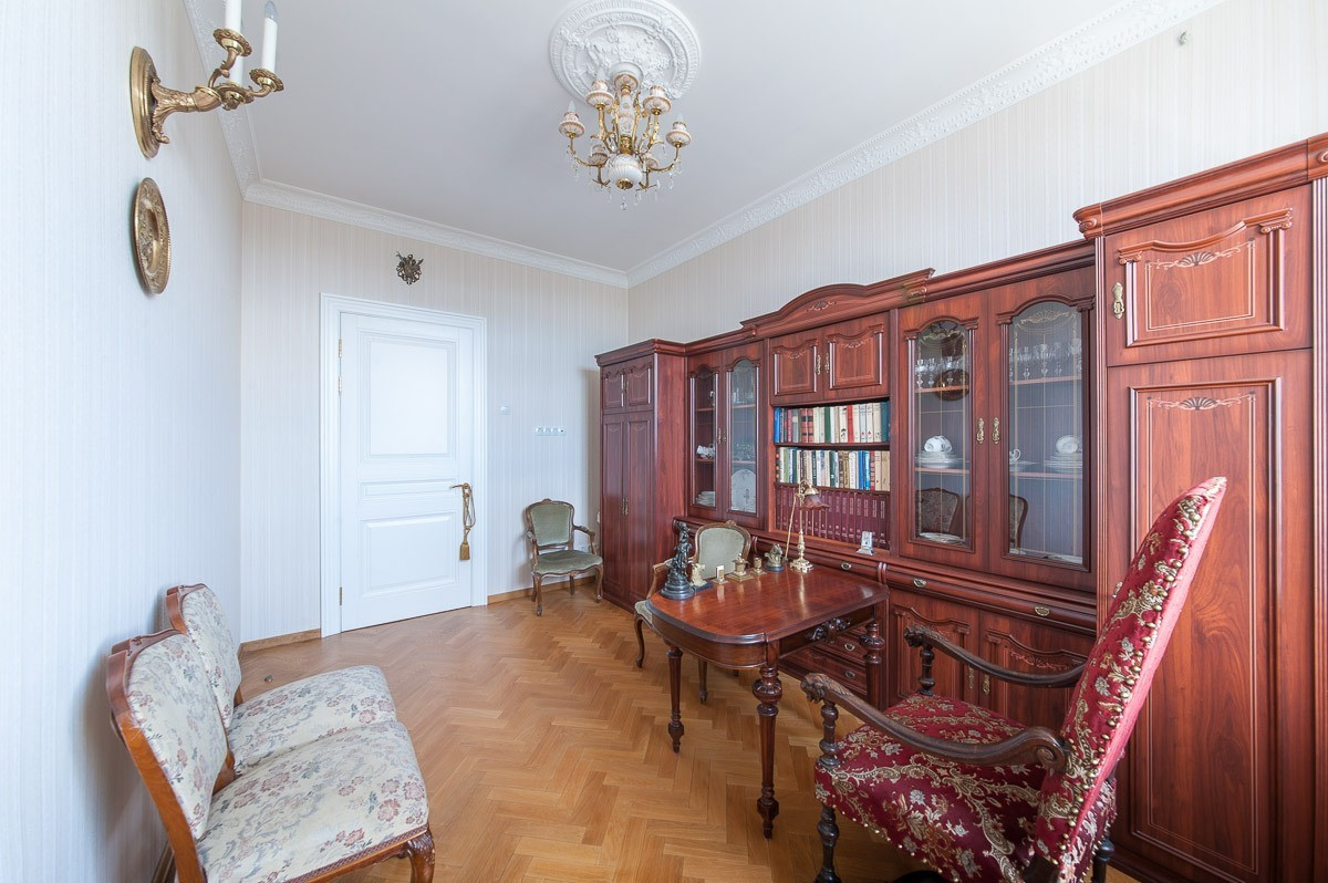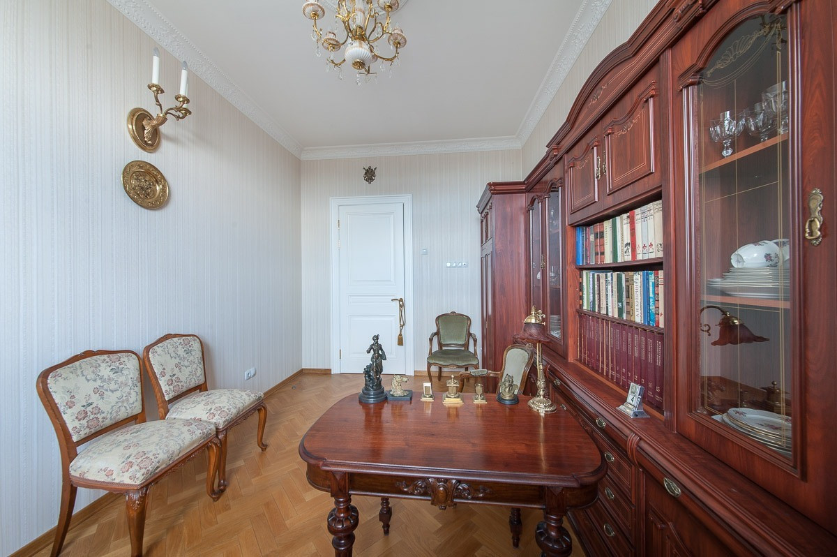Исключительные видовые характеристики сочетаются с высококачественным ремонтом в настоящем петербургском стиле, выполненным с использованием дорогих импортных натуральных материалов
