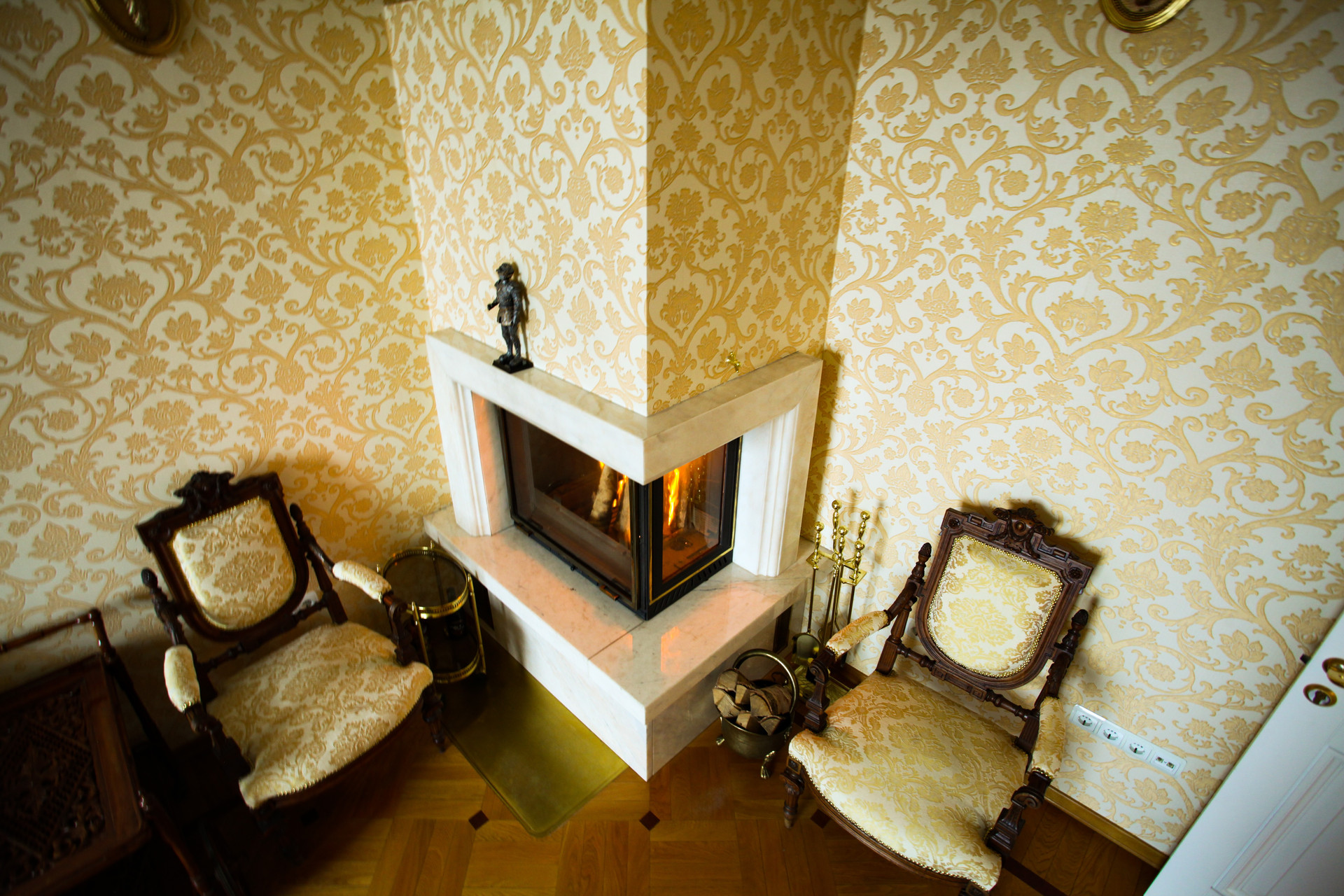 В гостиной установлен очень красивый мраморный камин, у которого можно будет посидеть с бокалом красного вина долгими зимними вечерами.