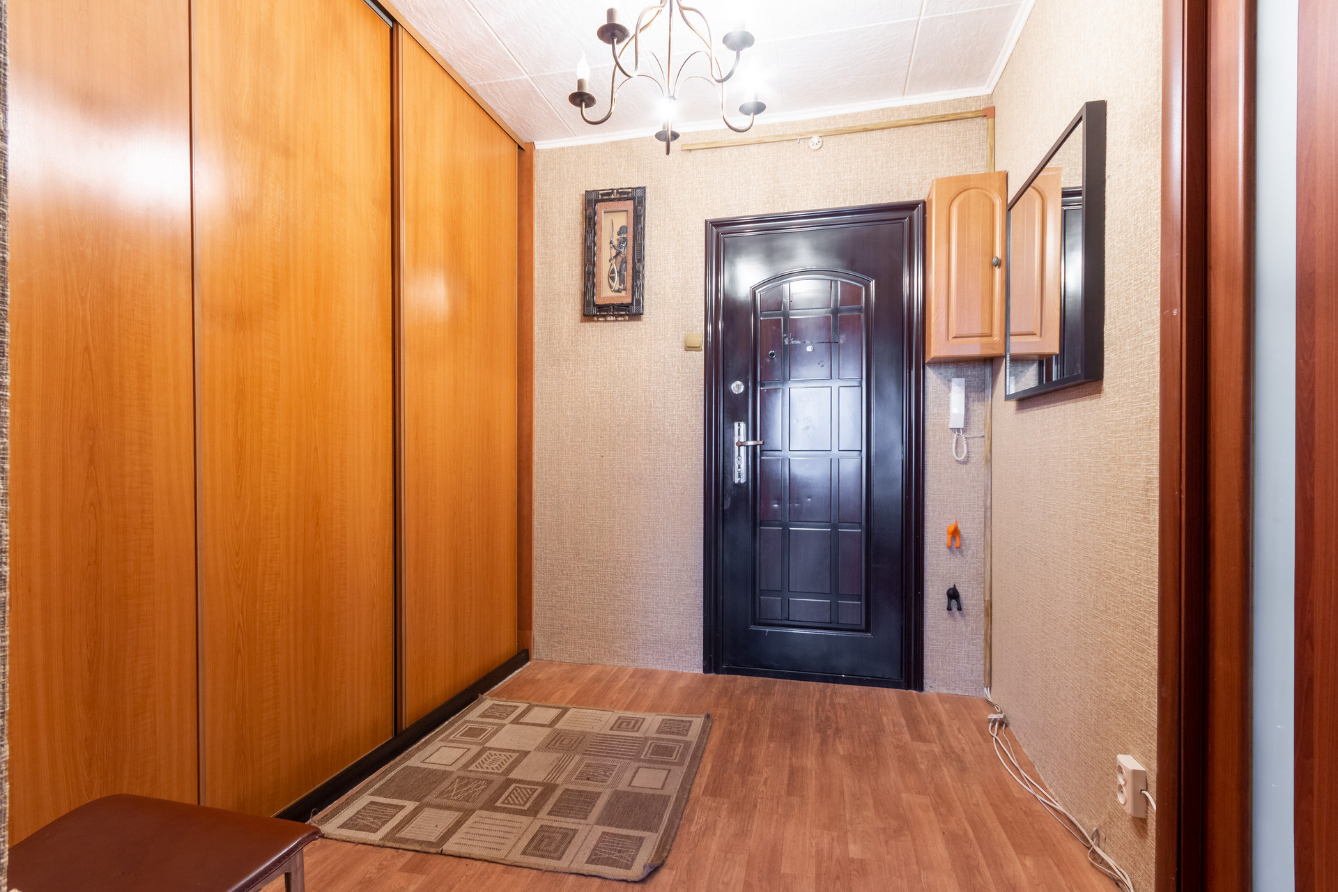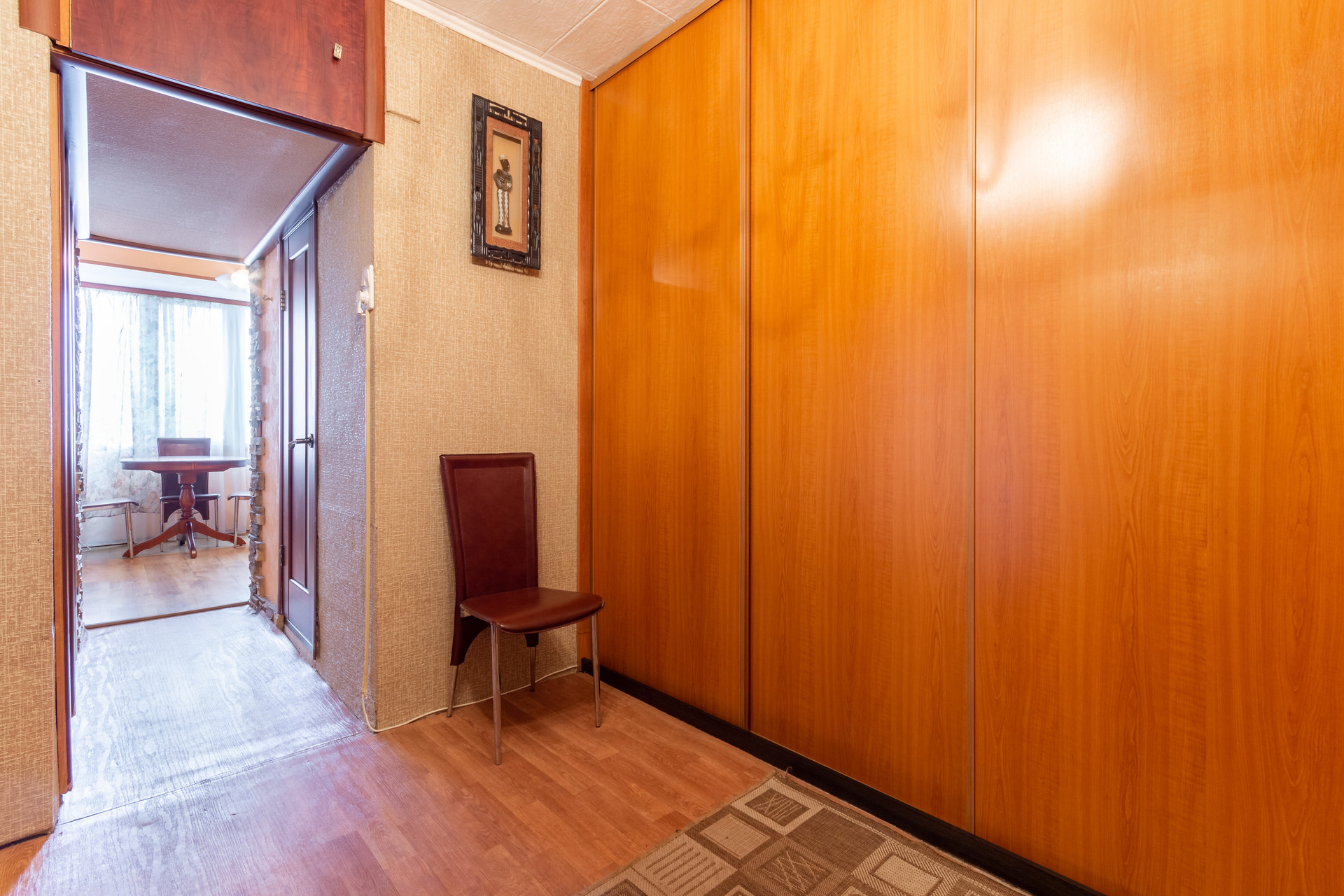 - вместительный коридор правильной квадратной формы с встроенным шкафом-купе