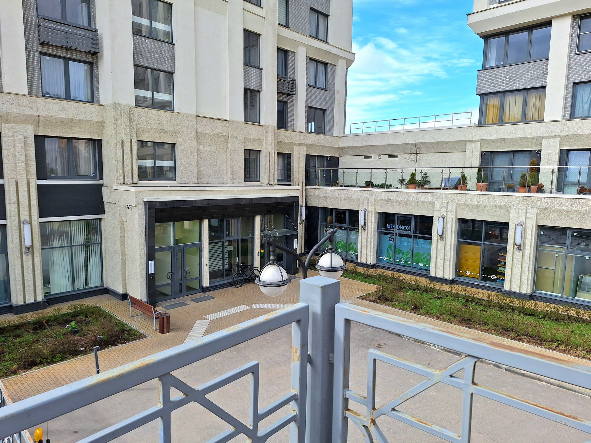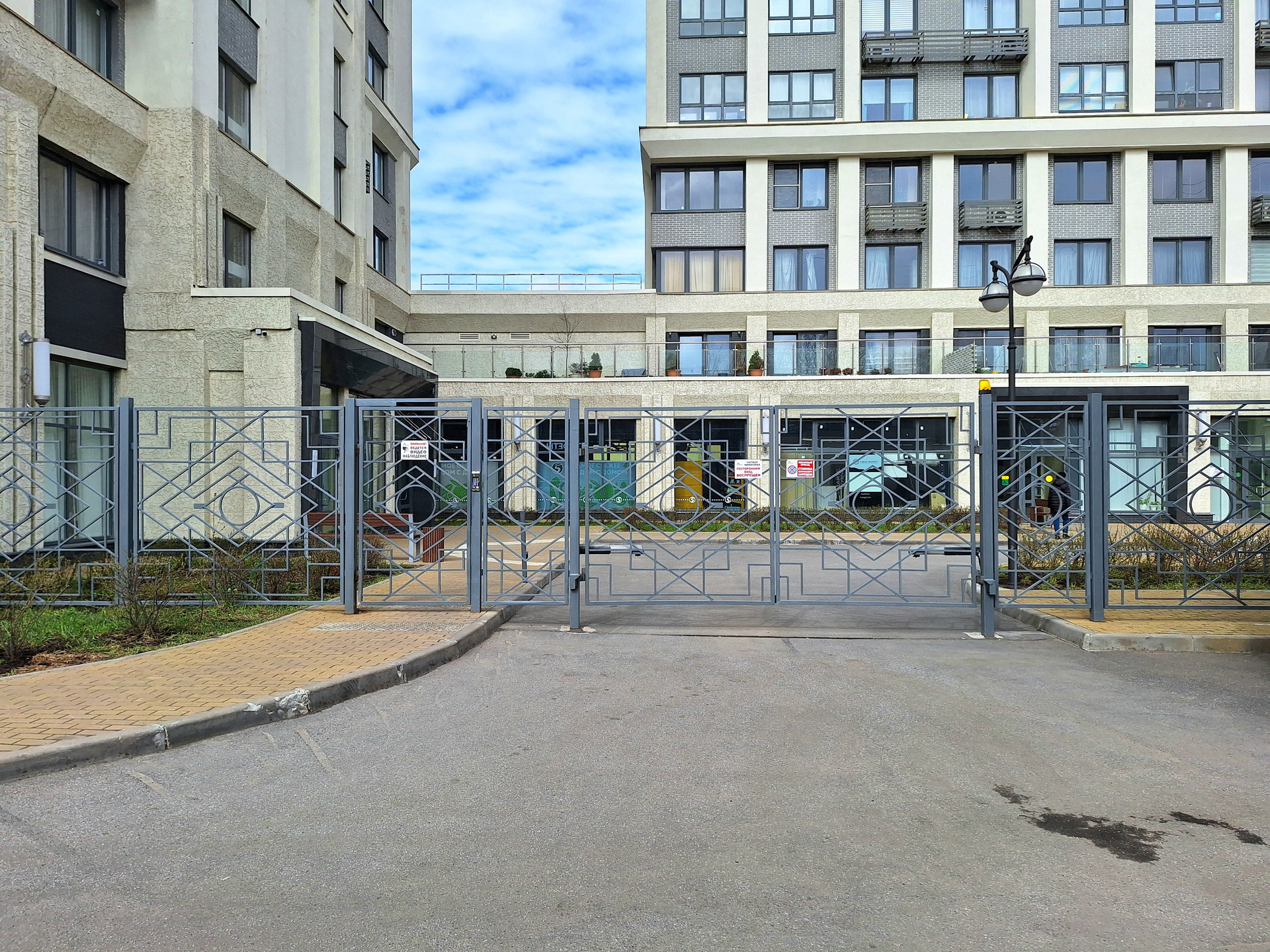 - Двор огорожен и закрыт, видеонаблюдение по всему периметру.  Во дворе своя детская игровая площадка.