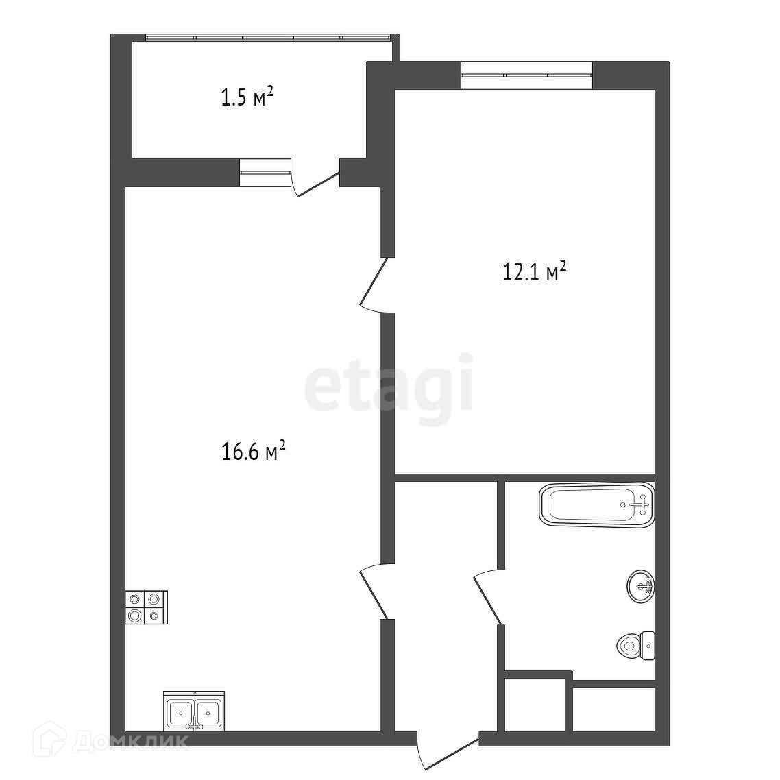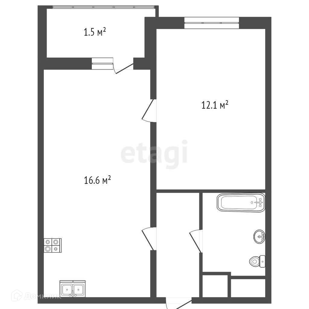 Жилая площадь 12.1 м2