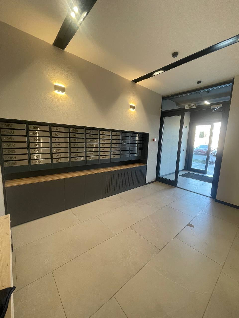 -внутри дома нас встречает дизайнерский холл с местами для хранения велосипедов и несколько бесшумных лифтов с подсветкой